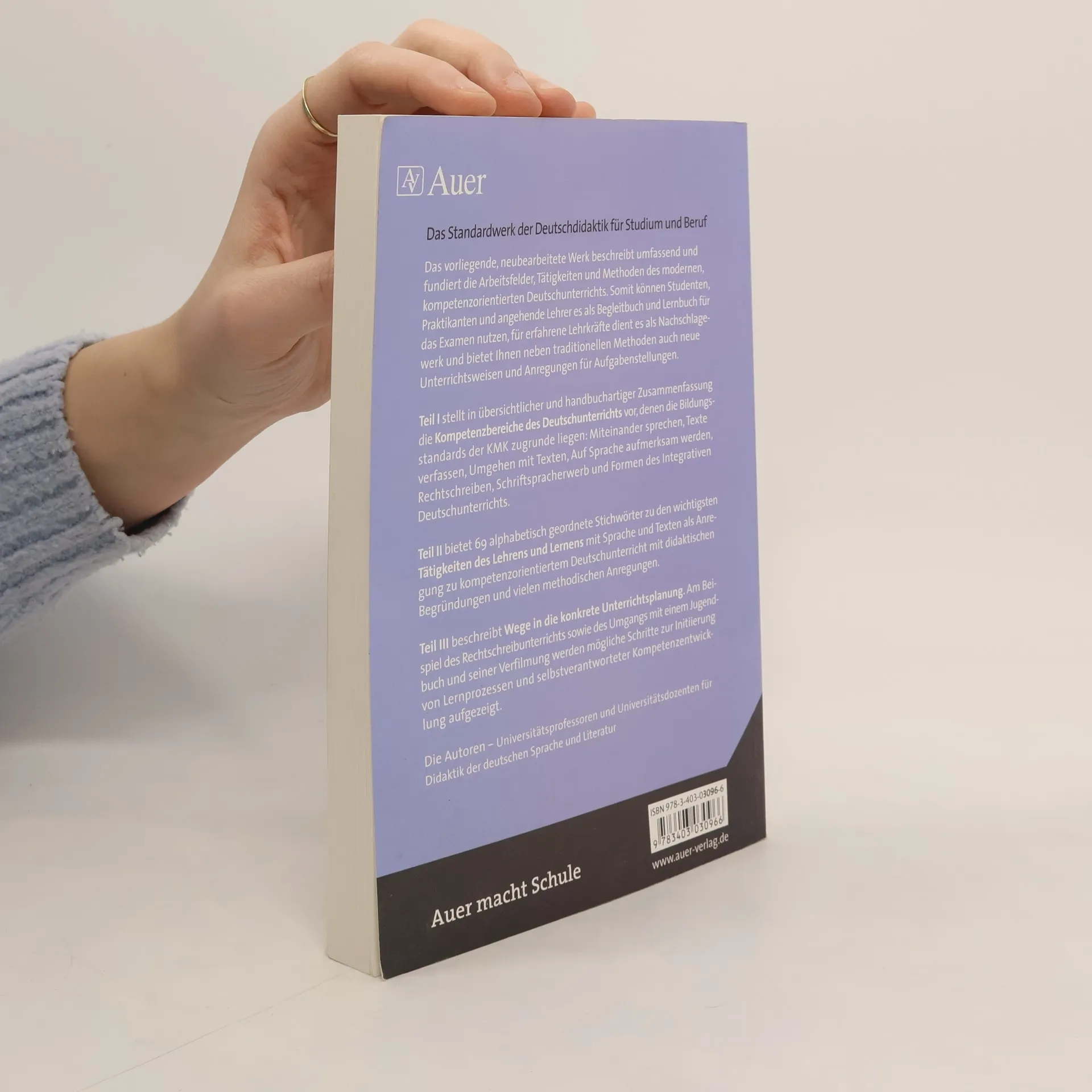 Ein Klassiker für das Lehramtsstudium im Fach Deutsch! Dieses umfassende Studienbuch stellt in handbuchartiger Form in Teil I die Aufgabenfelder des Deutschunterrichts vor: - Miteinander reden - Texte schreiben - Mit Texten umgehen - Auf Sprache aufmerksam werden - Rechtschreiben - Formen des integrativen Deutschunterrichts Teil II hat die Form eines Lexikons: 62 alphabetisch geordnete Stichwörter zu den wichtigsten Tätigkeiten des Lernens und Lehrens mit Sprache und Texten und deren intensive Förderung im Deutschunterricht. Mit didaktischen Begründungen und vielen methodischen Anregungen. Teil III zeigt die Vorgehensweise bei der Planung und schriftlichen Ausarbeitung einer Unterrichtseinheit am Beispiel der Klassenlektüre eines Jugendbuchs. Mit Ratschlägen zur schriftlichen Ausarbeitung von Unterrichtsplanung.