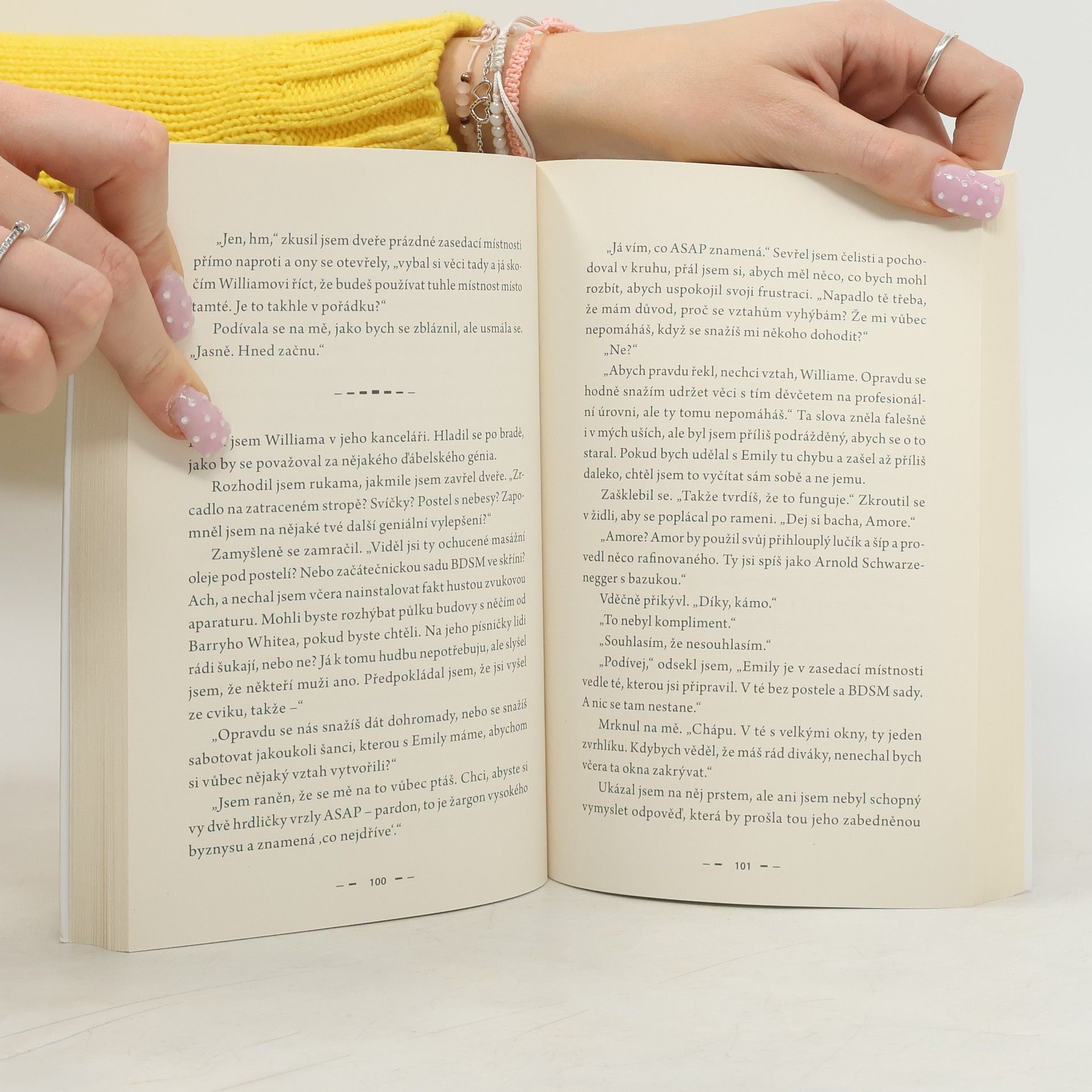 Asi si nikdo nemyslí, že mít sexy šéfa není vůbec komplikované ani matoucí. Ale musím mu už odolávat jen pár měsíců. V lednu odlétám do Paříže, abych si splnila svůj sen a stala se umělkyní. Škoda, že nemůžu mít svůj zákusek a náležitě si ho užít. Zapomněla jsem se zmínit… Můj sexy šéf byl mou školní láskou. Tak trochu. Nejprve jsem ho chtěla samou láskou umačkat. Nakonec jsem ho chtěla už jen umačkat. Teď je zpět a klidně by mohl mít na hrudi napsáno „nesahat“. Jedna drobná otázka: počítalo by se, kdybych nepoužila ruce? Odpovím si sama. Ano, Emily, ty nadržená čubko, počítalo. Mimoto můj sen na mě prakticky čeká naservírovaný na zlatém podnose. Pokud se zvládnu chovat tak, jak mám. Byla bych naprostý blázen, abych riskovala. Taky jsem pyšná na to, jak dlouho jsem se zvládla jako blázen nechovat, a chci si svůj rekord udržet. Musím pro něj udělat akorát jednu rychlovku. Pár plakátů a několik dekorací na velkou Halloweenskou party, kterou pořádá. Pak jen odejdu od jeho snových očí a nádherného těla, sednu na letadlo a zapomenu na všechny nádherné děti, které bychom spolu mohli vyrobit. Ale tři měsíce jsou opravdu dlouhá doba…