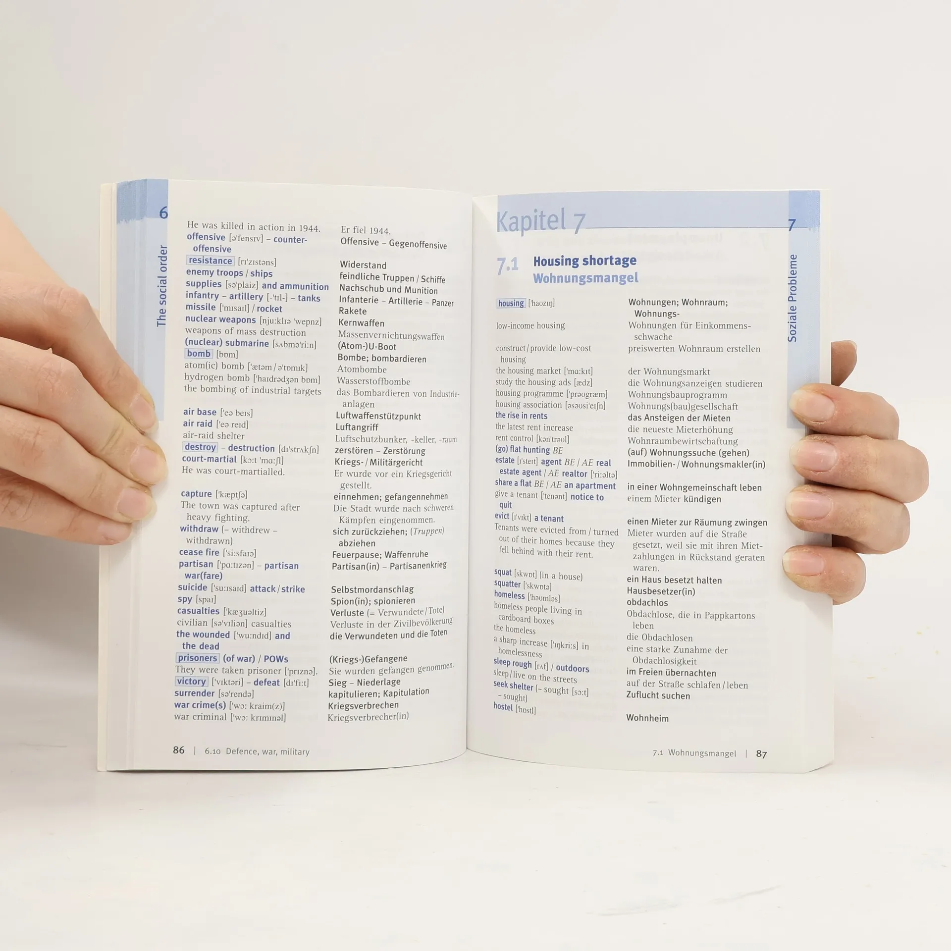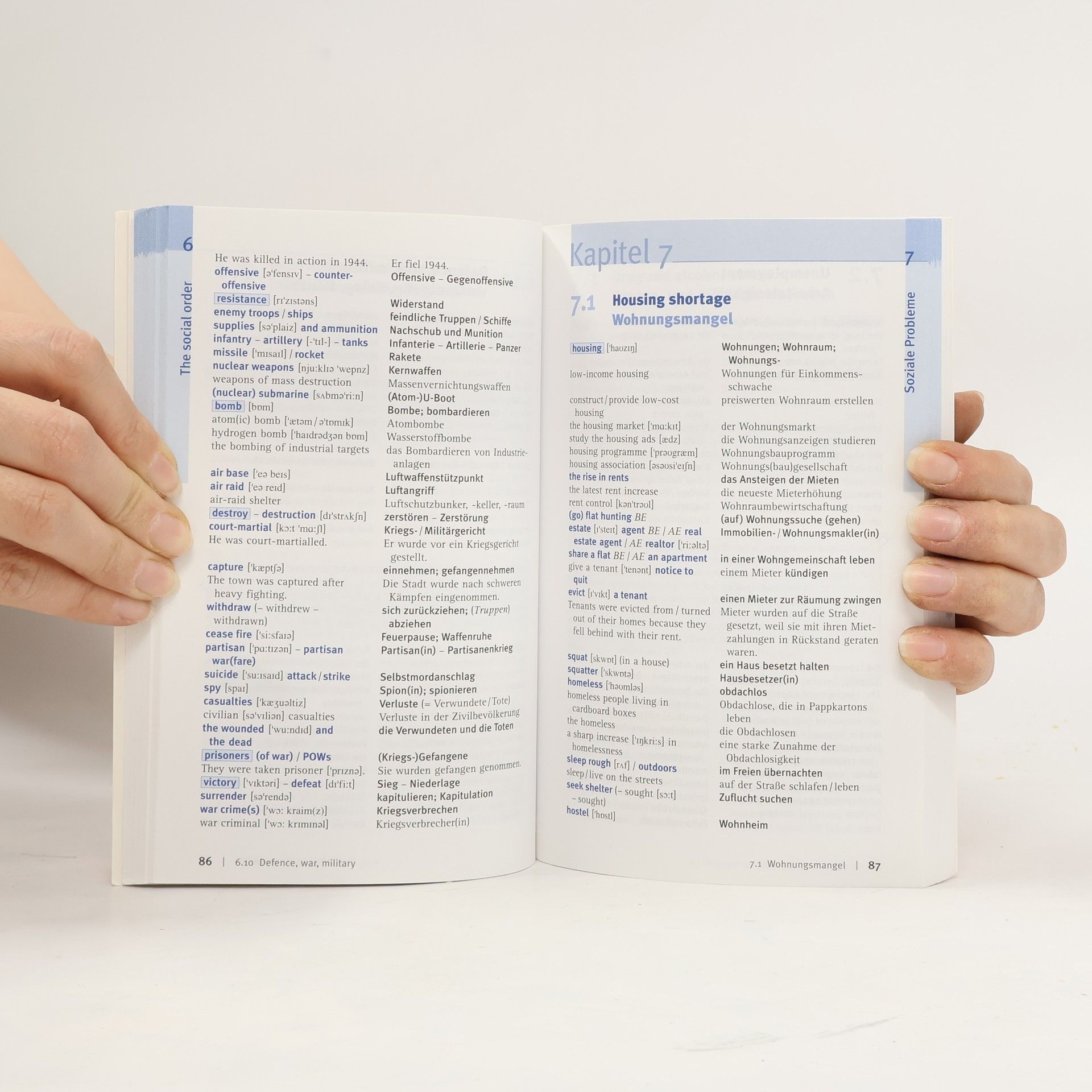 Grundwortschatz mit rund 500 der wichtigsten Wörter (alphabetisch geordnet) und weiteren ca. 8.000 thematisch geordneten Begriffen; mit Anwendungsbeispielen, Unterscheidung zwischen englischem und amerikanischem Englisch, Infoboxen zu Sprachgebrauch und landeskundlichen Infos