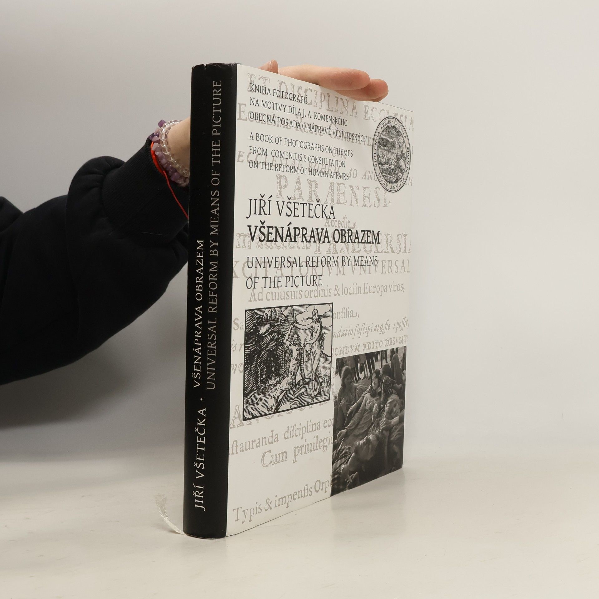 Doménou zkušeného fotografa, Pražského chodce Jiřího Všetečky, nejsou jen světově proslulé snímky našeho hlavního města, ale i dobový sociální dokument. Všenáprava obrazem - fotografie ze života lidí vznikaly jako inspirace k textům Jana Amose Komenského Obecná porada o nápravě věcí lidských. Nadčasový a dodnes platný text starý 400 let přiměl Jiřího Všetečku k realizaci originálních fotografií, které jsou k těmto textům jedinečně vázány. Právě spojením těchto dvou motivů je dosaženo zcela nových emotivních vjemů. Snaha Jiřího Všetečky o "všenápravu obrazem" vyzařuje ze světlem zachycené komunikace mezi lidmi před kamerou a za ní, z hlubokého pochopení fotografovaných tváří, výrazů, úsměvů i vrásek, typů lidí a vztahů mezi nimi. Fotografie ze série Všenáprava obrazem putovaly již v roce 1992 v šesti exemplářích po Evropě a postupně vzbudily zaslouženou pozornost ve SRN, Holandsku, Maďarsku, Švédsku, Švýcarsku, Rakousku, Francii a Itálii. I proto pevně věříme v úspěch vydávané publikace a v to, že dokáže moderní formou přiblížit Komenského dalším generacím čtenářů.
