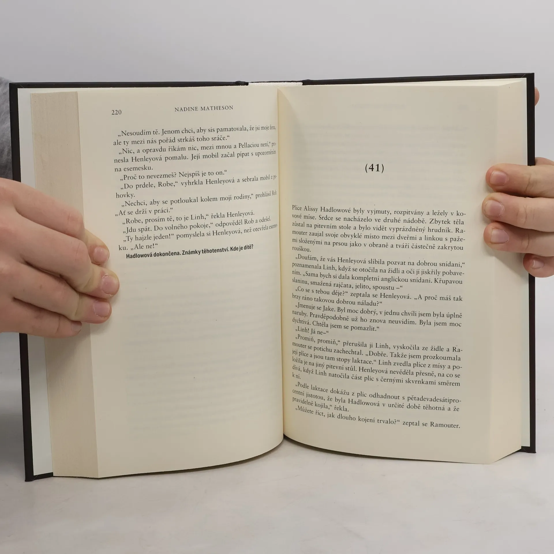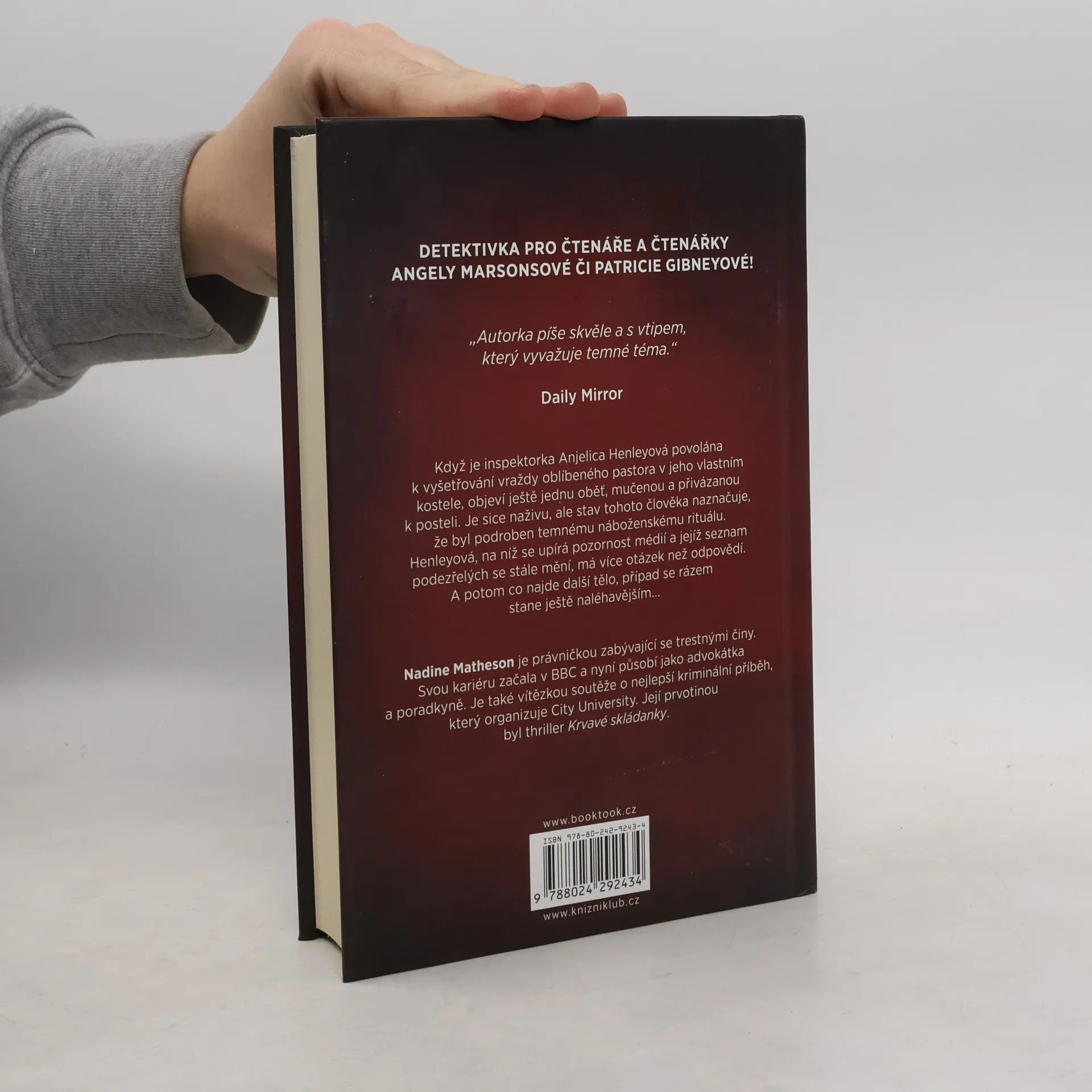 Když je inspektorka Anjelica Henleyová povolána k vyšetřování vraždy oblíbeného pastora v jeho vlastním kostele, objeví druhou oběť, mučenou a přivázanou k posteli. Je sice naživu, ale stav tohoto člověka naznačuje, že byl podroben temnému náboženskému rituálu. Henleyová, na niž se upírá pozornost médií a jejíž seznam podezřelých se stále mění, má více otázek než odpovědí. A potom co najde další tělo, případ se rázem stane ještě naléhavějším. Autorka Nadine Matheson čerpá ze svých zkušeností právničky a obratně zkoumá problémy rasy, třídy, moci a spravedlnosti prostřednictvím akčního příběhu, který vás udrží v napětí až do poslední děsivé stránky.