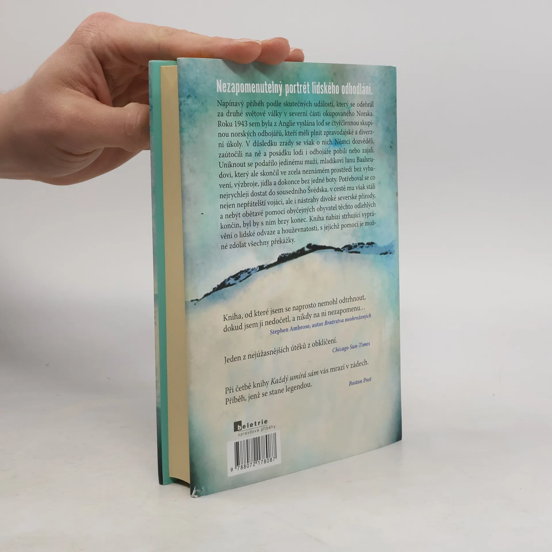 Jedna ze zásadních knih o umění špionáže a přežití. Strhující vyprávění o lidské odvaze a houževnatosti, s jejichž pomocí je možné zdolat všechny překážky. Napínavý příběh podle skutečných událostí, který se odehrál za druhé světové války v severní části okupovaného Norska. Roku 1943 sem byla z Anglie vyslána loď se čtyřčlennou skupinou norských odbojářů, kteří měli plnit zpravodajské a diverzní úkoly. V důsledku zrady se však o nich Němci dozvěděli, zaútočili na ně a posádku lodi i odbojáře pobili nebo zajali. Uniknout se podařilo jedinému muži, mladíkovi Janu Baalsrudovi, který ale skončil ve zcela neznámém prostředí bez vybavení, výzbroje, jídla, a dokonce bez jedné boty. Potřeboval se co nejrychleji dostat do sousedního Švédska, v cestě mu však stáli nejen nepřátelští vojáci, ale i nástrahy divoké severské přírody, a kdyby nebylo obětavé pomoci obyčejných obyvatel těchto odlehlých končin, byl by s ním brzy konec. Kniha původně vyšla v roce 1955, od té doby se dočkala mnoha vydání a nedávno nového v prestižním nakladatelství Canongate Press. O aktuálnosti titulu svědčí nová předmluva od Andyho McNaba, spisovatele a především bývalého vojáka, který bojoval v přední linii ve válce v Zálivu. V češtině kniha vychází poprvé.