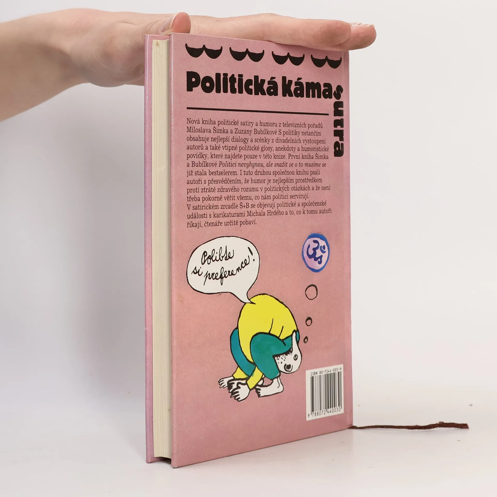 Politická kámasútra, aneb, Polibte si preference Politická kámasútra obsahuje jak dialogy a scénky z televizního pořadu Zuzany Bubílkové a Miloslava Šimka S politiky netančím, tak jejich další satirické glosy, anekdoty a humoristické povídky. Autoři ji napsali s přesvědčením, že humor je nejlepším prostředkem proti ztrátě zdravého rozumu. Zdá se, že je tento způsob humoru plně uspokojuje. Do jaké míry v něm naleznou zalíbení také čtenáři, nechme na nich