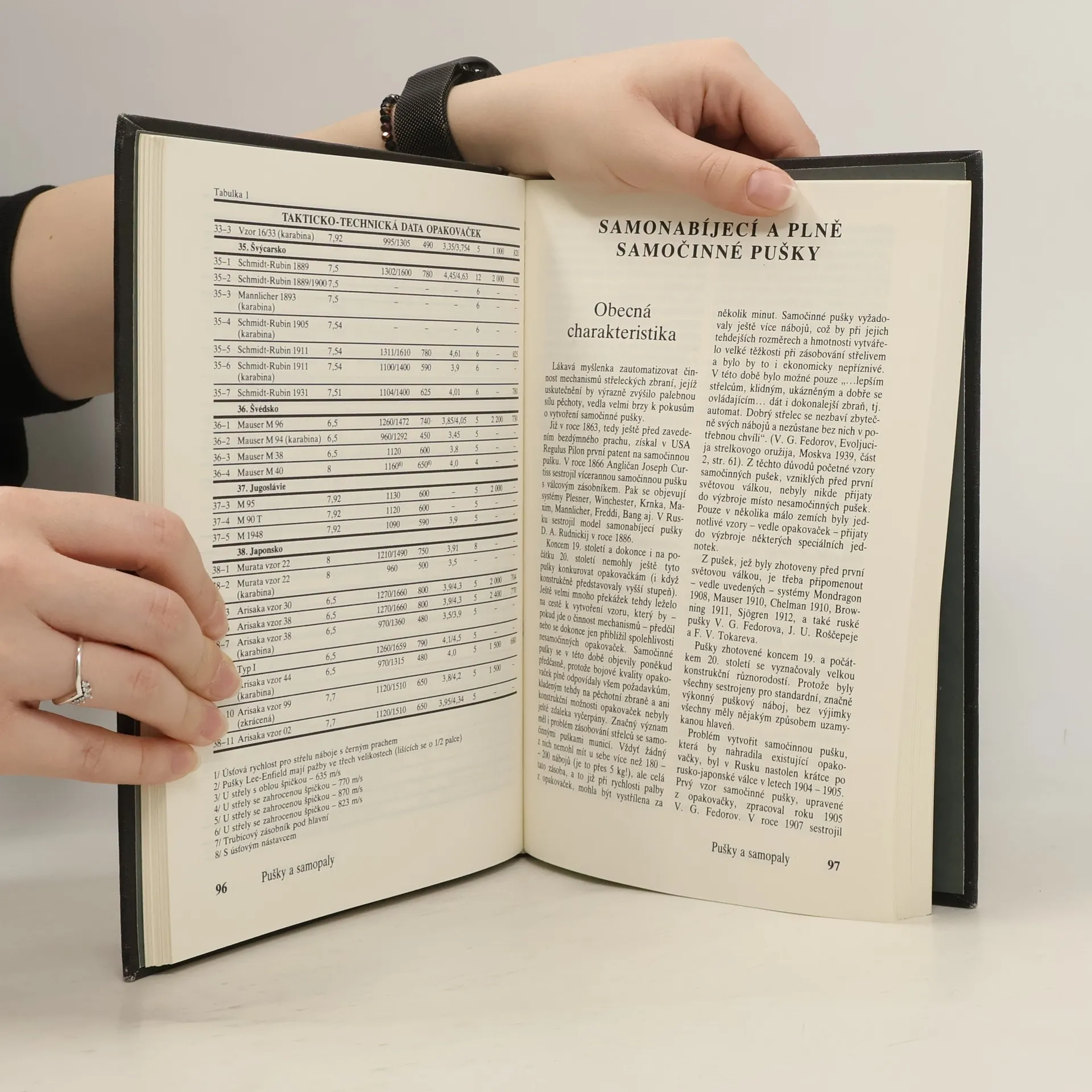 Kniha Pušky a samopaly je rozdělena do tří částí. V první jsou popsány a vyobrazeny opakovačky a samočinné pušky první generace, používající puškové náboje a sestrojené ještě koncem 19. století. Druhá část knihy je věnována samopalům, které se značně rozšířily v období druhé světové války a jejichž zdokonalování pokračuje dodnes. Třetí část hovoří o samočinných puškách druhé generace - automatech (útočných puškách) - současně nejrozšířenější střelecké zbrani, nacházející se ve výzbroji mnoha států a používající většinou náboje střední nebo snížené balistické výkonnosti. Jsou zde popsány i nepříliš početné vzory samočinných karabin z poválečného období. Přílohy obsahují údaje popisující používané náboje a ráže střeleckých zbraní, nábojové pásky a nábojové rámečky, bodáky a další dodatky.... celý text