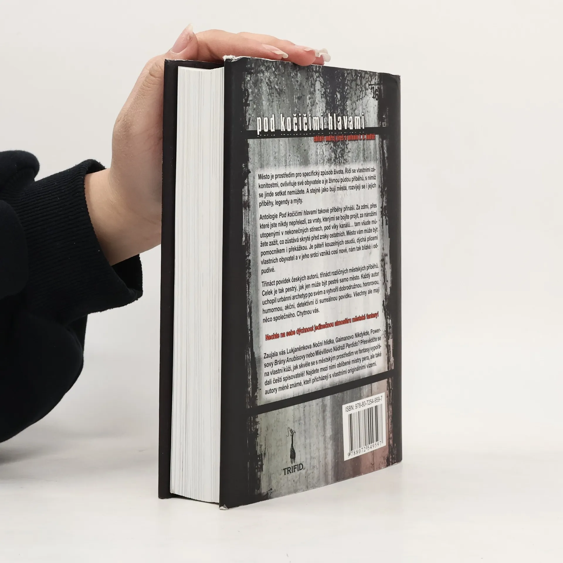 Město je prostředím pro specifický způsob života. Řídi se vlastními zákonitostmi, ovlivňuje své obyvatele a je živnou půdou příběhů, s nimiž se jinde setkat nemůžete. A stejně jako bují města, rozvíjejí se i jejich příběhy, legendy a mýty. Antologie Pod kočičími hlavami takové příběhy přináší. Za zdmi, přes které jste nikdy nepřelezli, za vraty, kterými se bojíte projít, za nárožími utopenými v nekonečných stínech, pod víky kanálů… tam všude můžete zažít, co zůstává skrytě před zraky ostatních. Město vám může být pomocníkem i překážkou. Je páteří kouzelných osudů, dýchá plícemi vlastních obyvatel a v jeho srdci vzniká cosi nové, nám tak blízké i odpudivé. Třináct povídek českých autorů, třináct rozličných městských příběhů. Celek je tak pestrý, jak jen může být pestré samo město. Každý autor uchopil urbánní archetyp po svém a vytvořil dobrodružnou, hororovou, humornou, akční, detektivní či surreálnou povídku. Všechny ale mají něco společného. Chytnou vás. Sestavil Ondřej Jireš a Antonín K. K. Kudláč.