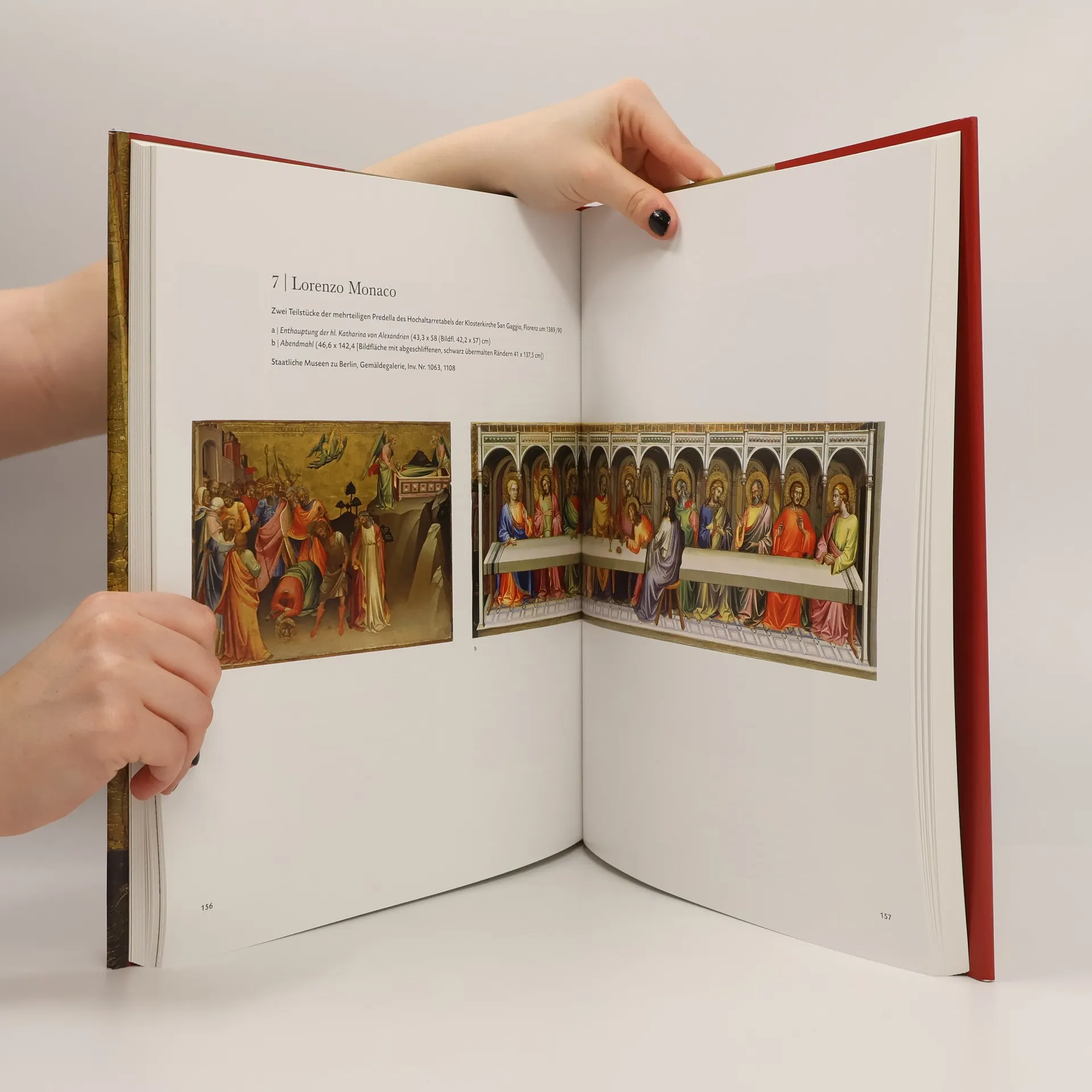 Die italienische Malerei des Spätmittelalters und der Frühen Neuzeit wird oft mit ikonenhaften Andachtsbildern assoziiert. Diese Publikation zeigt jedoch, dass die Goldgrundmalerei weit mehr war als ein Andachtsmedium. Anlässlich des 175-jährigen Jubiläums der Gemäldegalerie Berlin wurde die umfangreiche Sammlung durch zahlreiche Leihgaben ergänzt. Besonders hervorzuheben ist die erstmalige Wiedervereinigung des Hochaltarbildes von Ugolino de Nerio aus der Kirche Santa Croce in Florenz seit seiner Zerlegung im 19. Jahrhundert, das in Originalgröße ausgestellt wird. Die Kuratoren haben sich der Aufgabe gewidmet, die Wirkung der Goldgrundmalerei am ursprünglichen Aufstellungsort zu untersuchen. Dies verdeutlicht das Zusammenspiel von Raumstruktur und Altaraufbau, das der Künstler zur Wirkung seines Werkes nutzte. Die Altarpredellen erzählen detailreiche, naturalistische Geschichten vom Leben der Heiligen und biblischen Figuren. Die wissenschaftlichen Untersuchungen konzentrieren sich auf die Umsetzung von Schriftquellen in Bildgeschichten sowie die Identifizierung von Erzählstruktur und Grammatik. Zahlreiche farbige Reproduktionen zeigen die hohe Entwicklung der Kunst dieser Zeit und laden ein, die bewegenden Geschichten der Bilder zu erkunden. Die Ausstellung ist die erste ihrer A