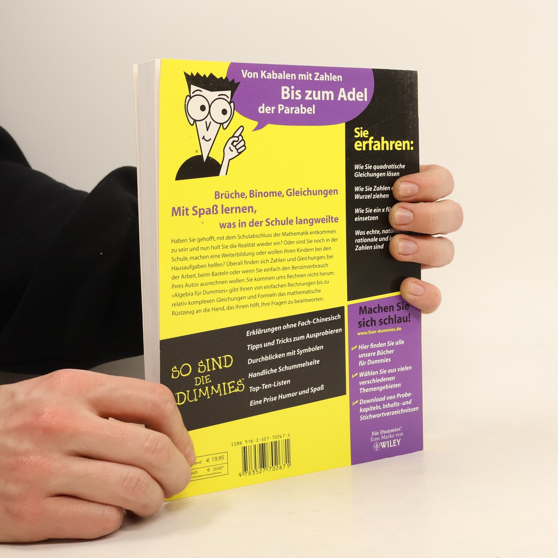 Da glaubt man, nach der Schule wäre man Mathematik und Algebra entkommen, und dann hatte der Lehrer, der immer behauptete, dass man in der Schule fürs Leben lerne, doch Recht. „Algebra für Dummies“ hilft allen, bei denen die Mathematik unversehens wieder ins Leben zurückgekehrt ist, sei es nun am Arbeitsplatz, bei einer Weiterbildung oder an der Universität. Wem Brüche, Exponenten und Kurvendiskussionen die Haare zu Berge stehen lassen und Terme auch in Papierform den Schweiß auf die Stirn treiben, dem hilft dieses Buch auf einfache und humorvolle Art und Weise.