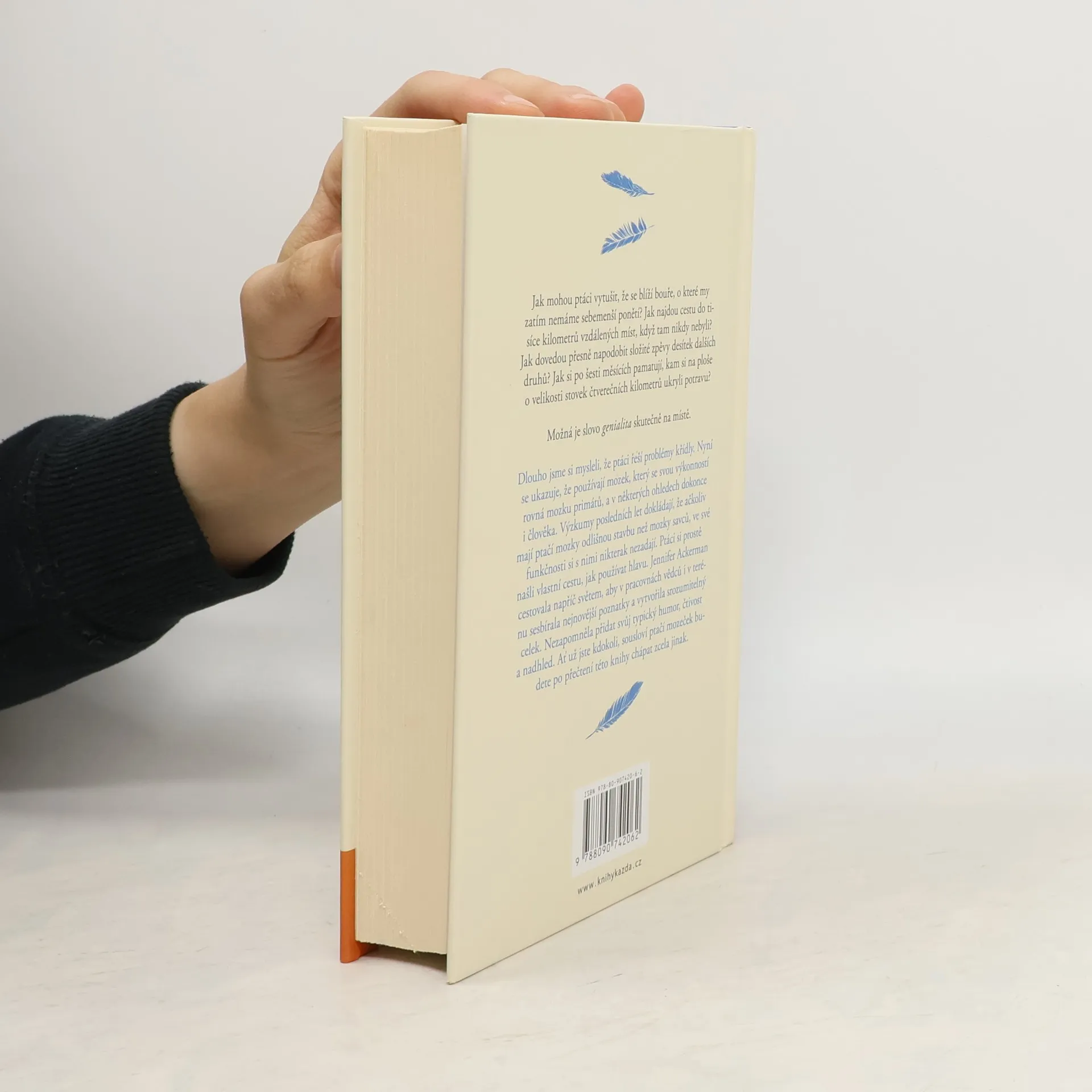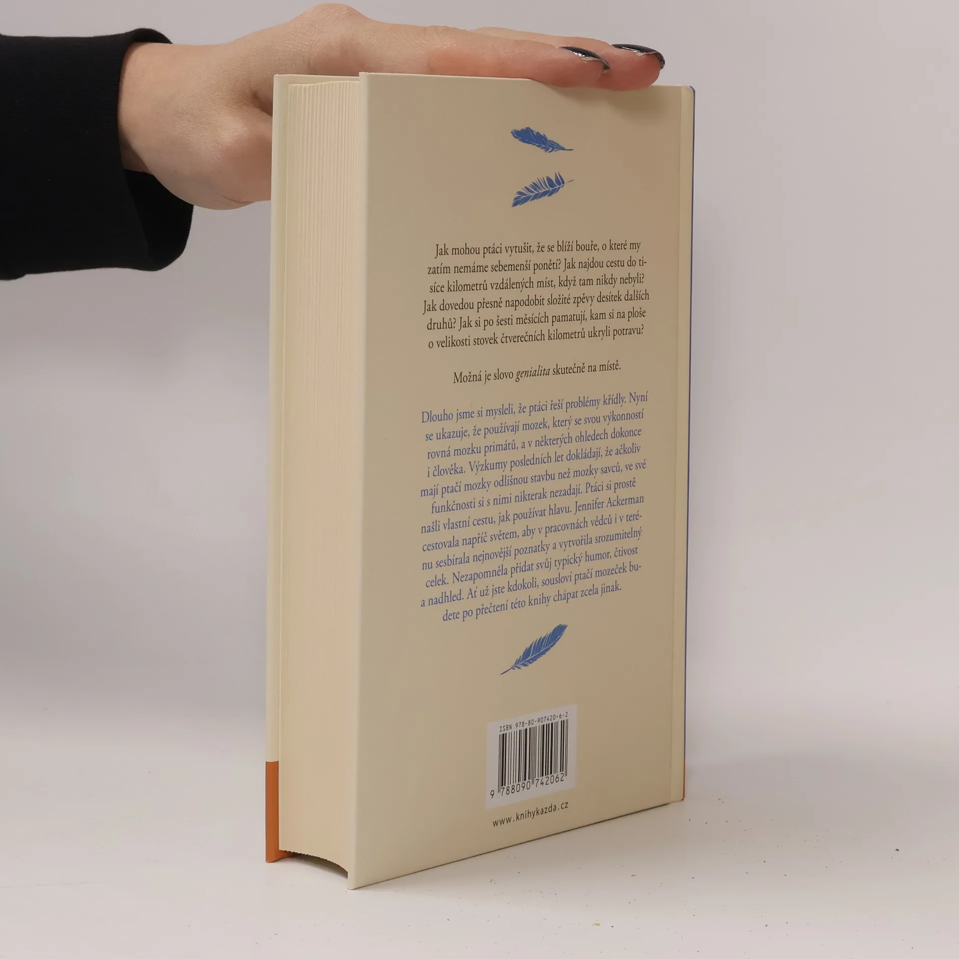 Jak mohou ptáci vytušit, že se blíží bouře, o které my zatím nemáme sebemenší ponětí? Jak najdou cestu do tisíce kilometrů vzdálených míst, když tam nikdy nebyli? Jak dovedou přesně napodobit složité zpěvy desítek dalších druhů? Jak si po šesti měsících pamatují, kam si na ploše o velikosti stovek čtverečních kilometrů ukryli potravu? Možná je slovo genialita skutečně na místě. Dlouho jsme si mysleli, že ptáci řeší problémy křídly. Nyní se ukazuje, že používají mozek, který se svou výkonností rovná mozku primátů, a v některých ohledech dokonce i člověka. Výzkumy posledních let dokládají, že ačkoliv mají ptačí mozky odlišnou stavbu než mozky savců, ve své funkčnosti si s nimi nikterak nezadají. Ptáci si prostě našli vlastní cestu, jak používat hlavu. Jennifer Ackerman cestovala napříč světem, aby v pracovnách vědců i v terénu sesbírala nejnovější poznatky a vytvořila srozumitelný celek. Nezapomněla přidat svůj typický humor, čtivost a nadhled. Ať už jste kdokoli, sousloví ptačí mozeček budete po přečtení této knihy chápat zcela jinak.