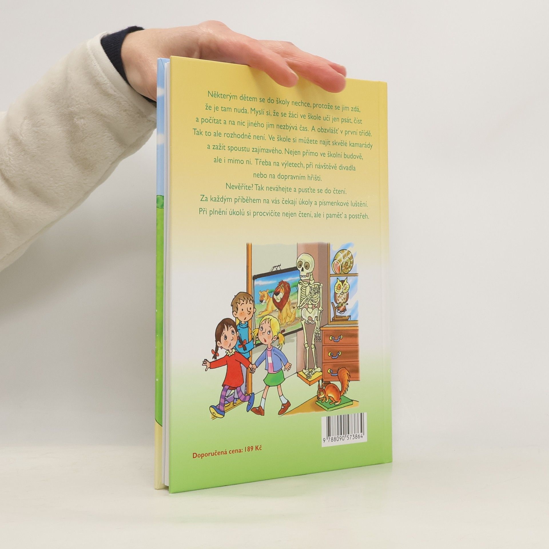 Některým dětem se do školy nechce, protože se jim zdá, že je tam nuda. Myslí si, že se žáci ve škole učí jen psát, číst a počítat a na nic jiného jim nezbývá čas. A obzvlášť v první třídě. Tak to ale rozhodně není. Ve škole si můžete najít skvělé kamarády a zažít spoustu zajímavého. Nejen přímo ve školní budově, ale i mimo ni. Třeba na výletech, při návštěvě divadla nebo na dopravním hřišti. Nevěříte? Tak neváhejte a pusťte se do čtení. Za každým příběhem na vás čekají úkoly a písmenkové luštění. Při plnění úkolů si procvičíte nejen čtení, ale i paměť a postřeh.
