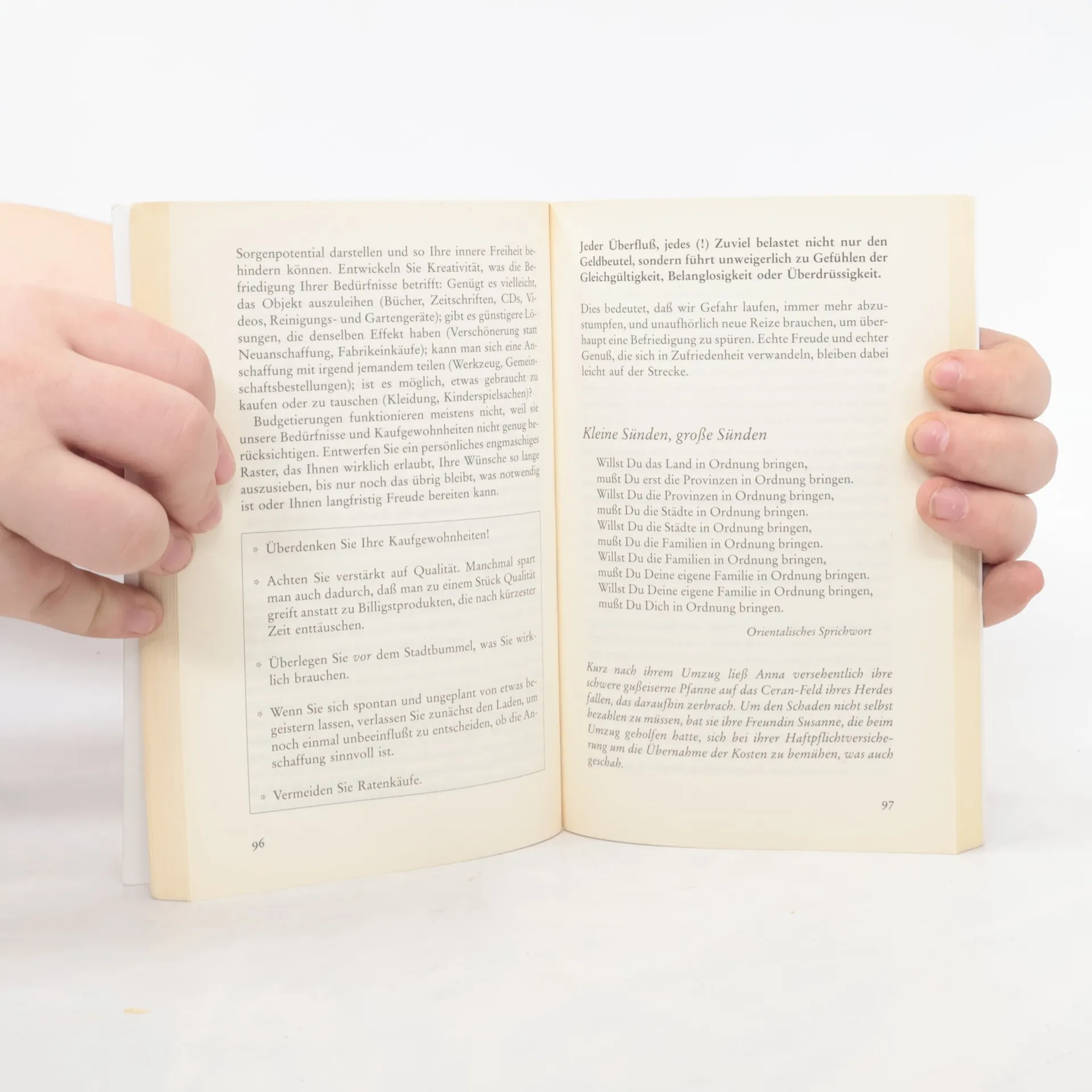 Vieles, was wir besitzen, ist überflüssiger Ballast: Nie gelesene Zeitungsausschnitte, seit Jahren nicht getragene Schuhe, das Fotolabor des Jüngsten, der auch schon ausgezogen ist ... Und wenn wir schon beim Aufräumen sind: Welche Vorurteile und Sorgen, die uns ans Herz gewachsen sind, haben eigentlich schon lange ausgedient? Hildegard Ressel zeigt, wie man das Leben innerlich und äußerlich "entrümpelt" und damit wieder leichter lebt.