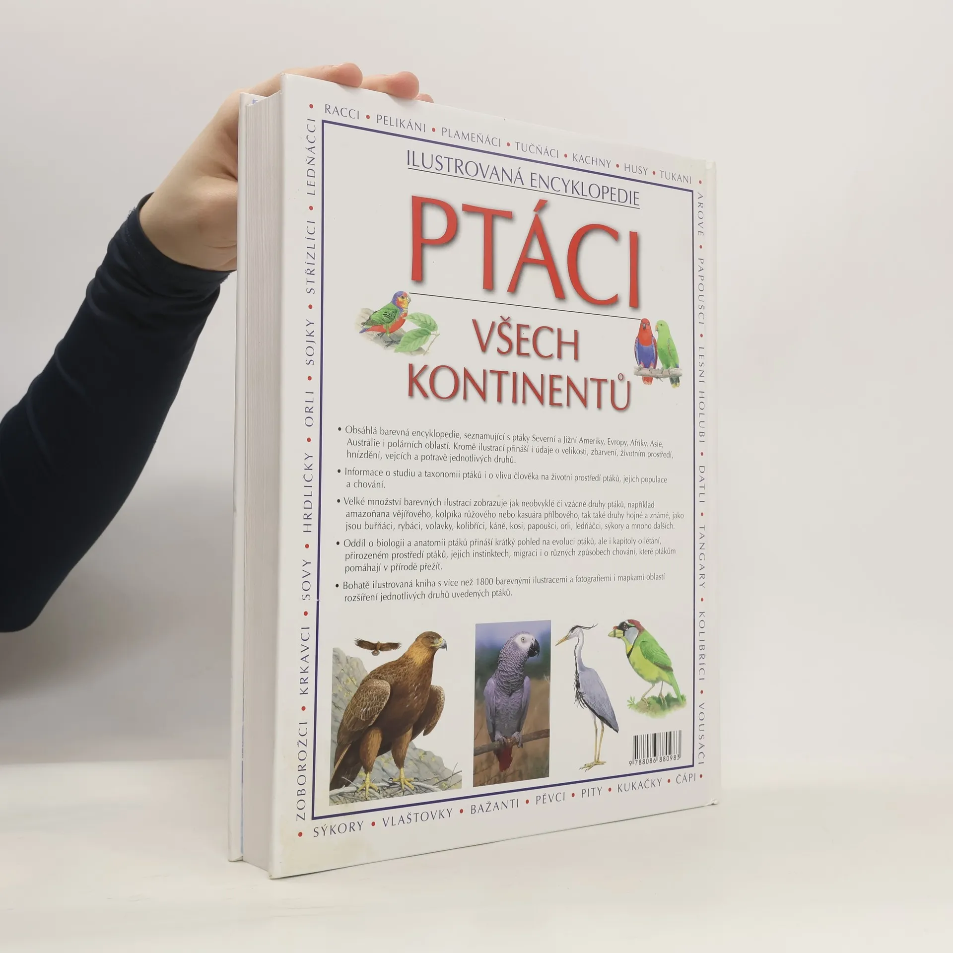 V této vynikající encyklopedii najdete všechny hlavní skupiny ptáků, které spatříte nejen v Evropě, ale kdekoliv na světě. Jedná se o dokonalého průvodce pro nadšené pozorovatele i pro začátečníky. Díky nádherným barevným ilustracím všech popisovaných ptáků se můžete spolehnout, že vyobrazení v knize přesně odpovídá jeho skutečnému vzhledu tak, jak ho můžete spatřit v přírodě! Malíř–odborník dokáže zdůraznit podstatný rozdíl v sezonním opeření či v opeření podle pohlaví tak, aby i amatér dokázal správně určit a zařadit každý druh.