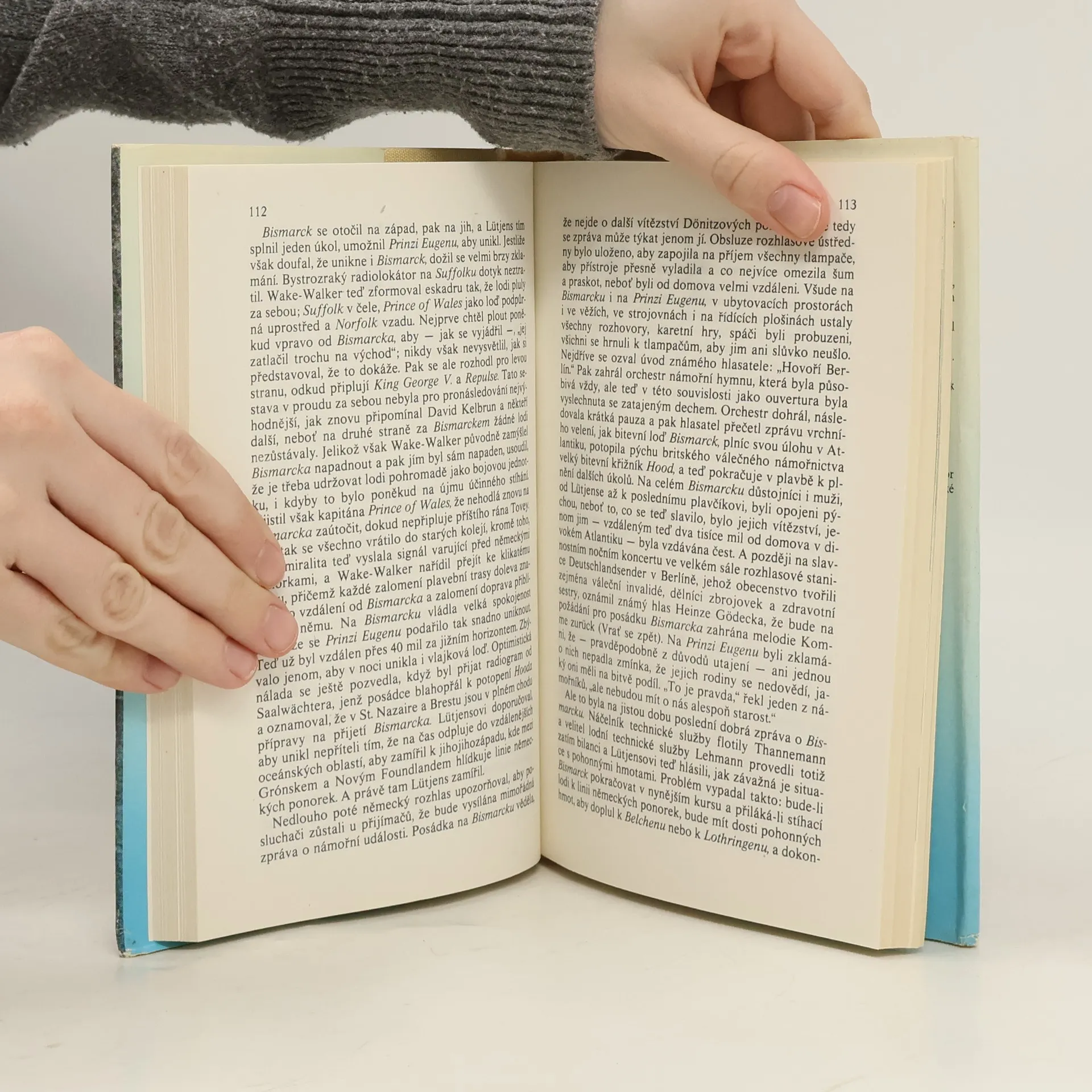 V květnu 1941 pronikla německá bitevní loď Bismarck, tehdy nejmohutnější válečná loď na světě, v rámci operace Rheinübung do Atlantiku, a vážně tak ohrozila obchodní trasy, na nichž byla Británie životně závislá. Britská admiralita zorganizovala mohutnou akci, jejímž jediným cílem bylo její vypátrání, uštvání a potopení. Do pronásledování, jež se v osmi dnech odehrávalo na nesmírných oceánských prostorách, do nějž se zapojili i příslušníci jiných národností a při němž přišlo o život přes 4000 námořníků, bylo zapojeno několik desítek lodí… Krátce po půl jedenácté 27. května 1941 se nad planoucím vrakem bývalé pýchy německého válečného námořnictva zavřela neklidná hladina Atlantiku. Skončila tím i jedna z velkých událostí historie námořního válčení a zaujala místo vedle bitev u Salaminy, Lepanta, anglického loďstva s Armadou, u Trafalgaru, Cušimy, Jutska, Midwaye a v Korálovém moři. Doslov Aleš Skřivan, 2. vydání.