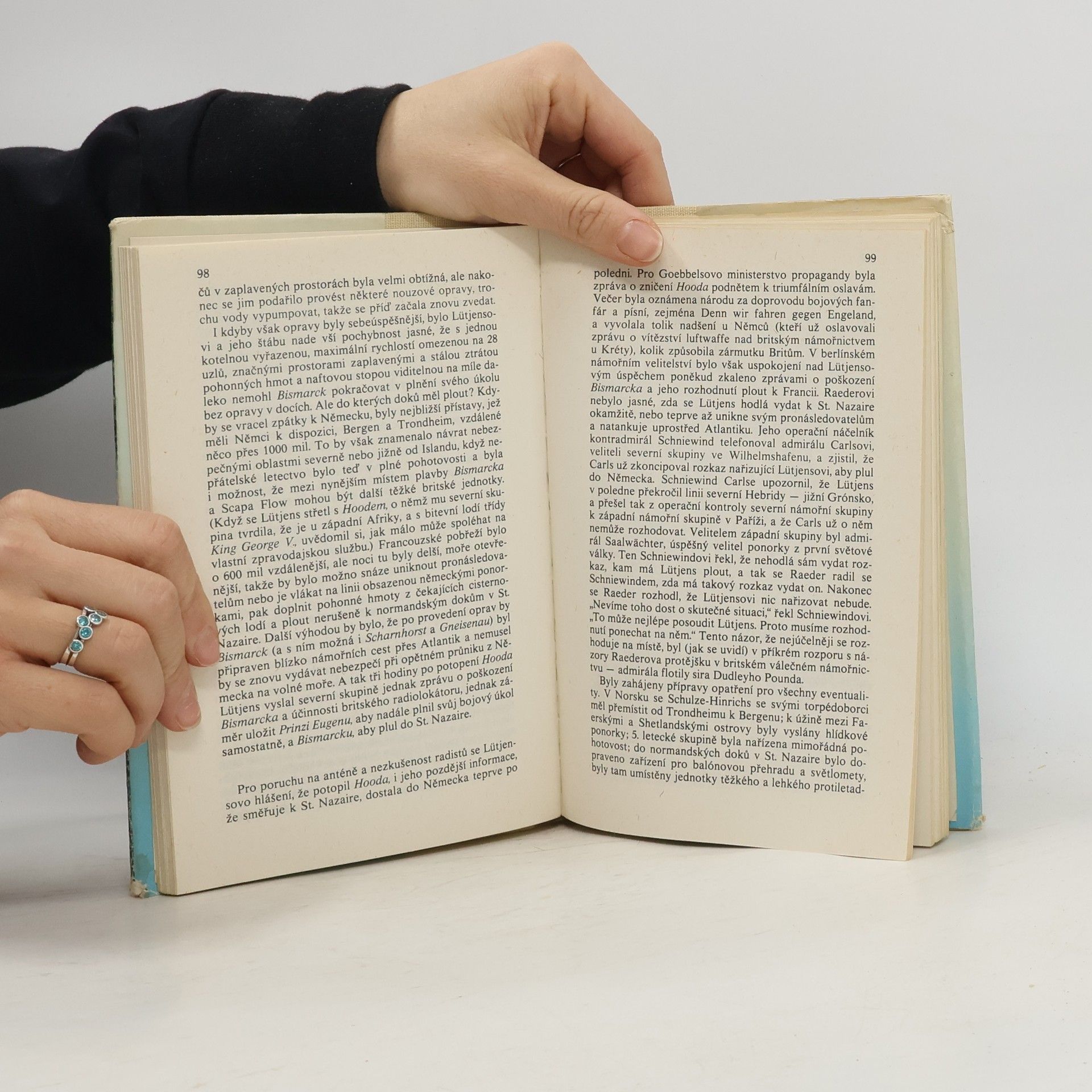V květnu 1941 pronikla německá bitevní loď Bismarck, tehdy nejmohutnější válečná loď na světě, v rámci operace Rheinübung do Atlantiku, a vážně tak ohrozila obchodní trasy, na nichž byla Británie životně závislá. Britská admiralita zorganizovala mohutnou akci, jejímž jediným cílem bylo její vypátrání, uštvání a potopení. Do pronásledování, jež se v osmi dnech odehrávalo na nesmírných oceánských prostorách, do nějž se zapojili i příslušníci jiných národností a při němž přišlo o život přes 4000 námořníků, bylo zapojeno několik desítek lodí… Krátce po půl jedenácté 27. května 1941 se nad planoucím vrakem bývalé pýchy německého válečného námořnictva zavřela neklidná hladina Atlantiku. Skončila tím i jedna z velkých událostí historie námořního válčení a zaujala místo vedle bitev u Salaminy, Lepanta, anglického loďstva s Armadou, u Trafalgaru, Cušimy, Jutska, Midwaye a v Korálovém moři. Doslov Aleš Skřivan, 2. vydání.