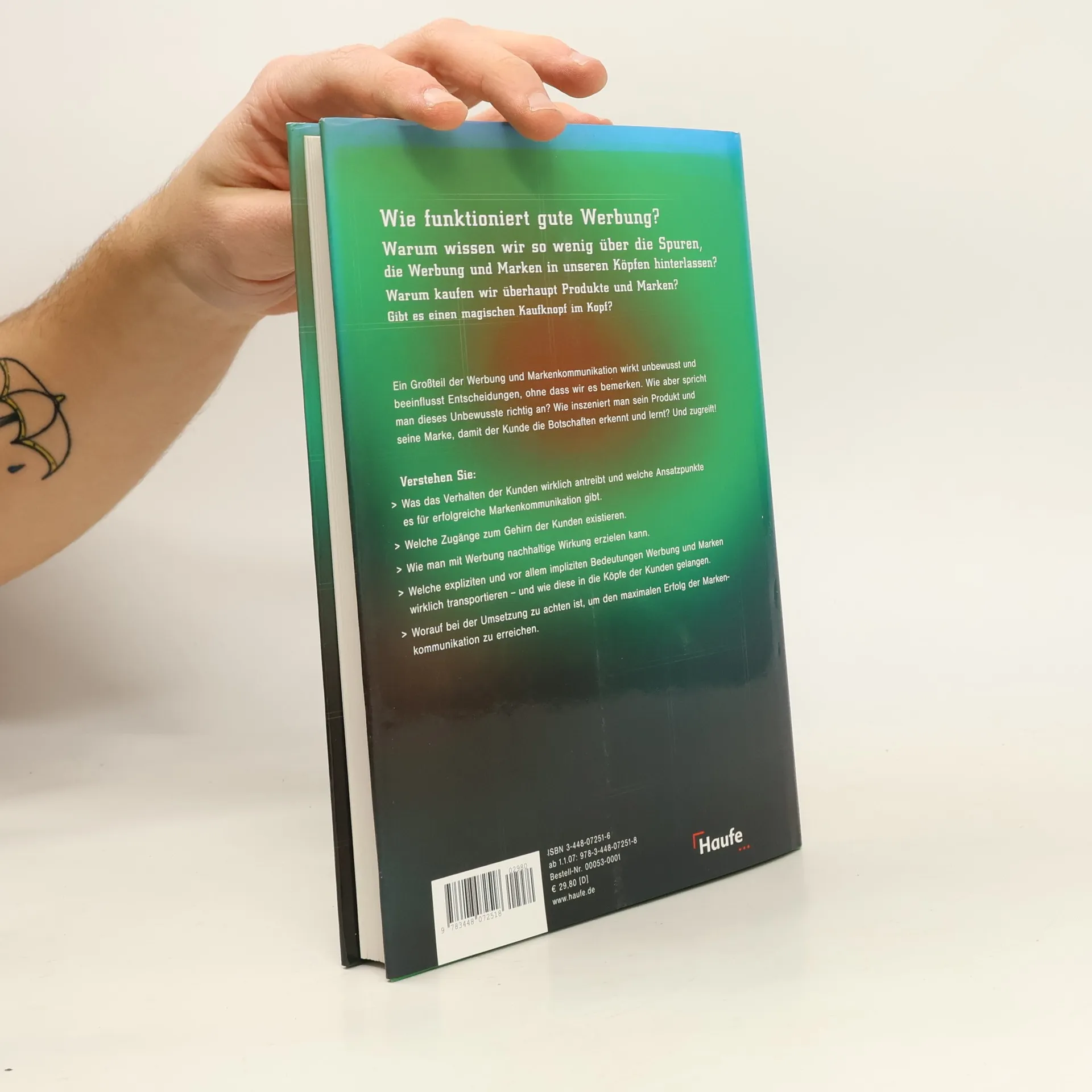 Testverfahren zeigen, welche Spuren Marken und Werbung in den Köpfen von Kunden hinterlassen und was von ihnen wahrgenommen wird. Lesen Sie hier, wie Werbung so gestaltet wird, dass sie den Weg zum Gehirn des Kunden findet und sein Kaufverhalten beeinflusst. Inhalte Was das Verhalten der Kunden wirklich antreibt und welche Ansatzpunkte es für erfolgreiche Markenkommunikation gibt. Welche Zugänge zum Gehirn der Kunden existieren. Wie man mit Werbung nachhaltige Wirkung erzielt. Welche expliziten und vor allem impliziten Bedeutungen Werbung und Marken wirklich transportieren - und wie diese in die Köpfe des Konsumenten gelangen. Worauf bei der Umsetzung zu achten ist, um den maximalen Erfolg der Markenkommunikationzu erreichen.
