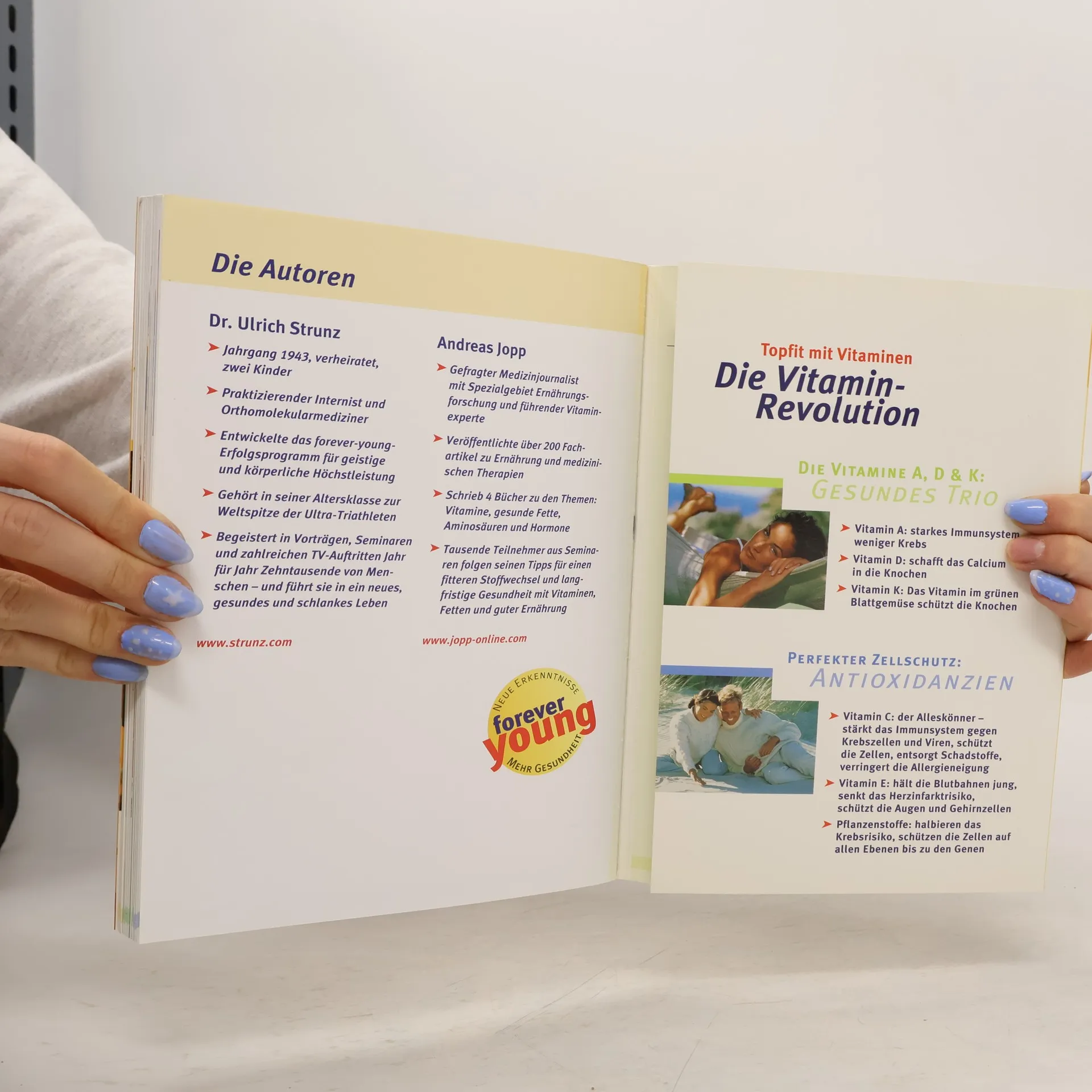 Die persönliche Gesundheitsversicherung: Vitamine helfen, Jugendlichkeit und Leistungskraft zu erhalten. Basierend auf den neuesten Forschungsergebnissen zeigt dieser Ratgeber, wie Vitamine dabei helfen, Jugendlichkeit und Leistungskraft zu erhalten. Der Leser erfährt, was in unserer Nahrung überhaupt noch enthalten ist - und was aus der Apotheke ergänzt werden sollte. Wer den Körper mit Vitalstoffen versorgt, hält die Zellen jung und stärkt das Immunsystem, wird schnell leistungsfähiger und stressresistent. Langfristig lässt sich Erkrankungen wie Arterienverkalkung, Herzinfarkt und geistigem Abbau vorbeugen und das Krebsrisiko reduzieren. Und: Mit Hilfe von Vitaminen kann man souverän Leistungstiefs überspringen, bleibt fit und vital.