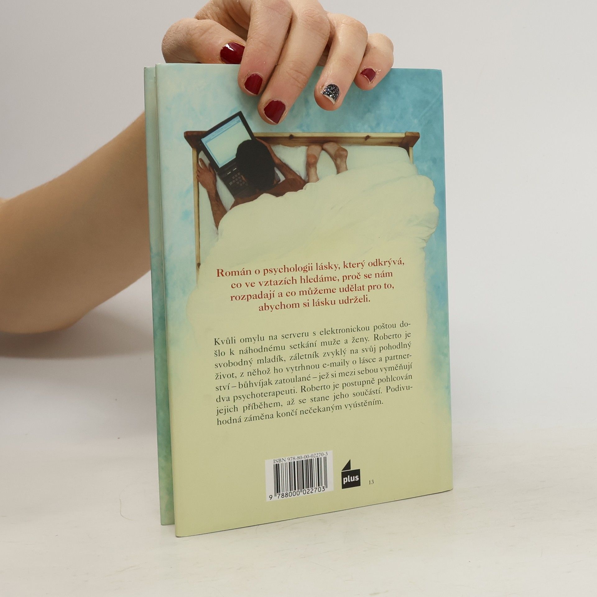 Román dvou španělských psychoterapeutů se zabývá láskou a partnerstvím, což autoři demonstrují na příběhu náhodného setkání muže a ženy v elektronické poště. On, ona a počítač - to je ústřední trojice této knihy. K Robertovi, právě zápasícímu s nefungujícím vztahem, se omylem dostane email terapeutky Laury, rozebírající s kolegou psychologii lásky. Jelikož v jejích zprávách nachází Robert odpověď na své otázky, rozhodne se pod falešnou identitou udržovat s pisatelkou písemný a později i osobní kontakt, vedoucí až k zajímavému rozuzlení. Partnerská terapie v románovém provedení.