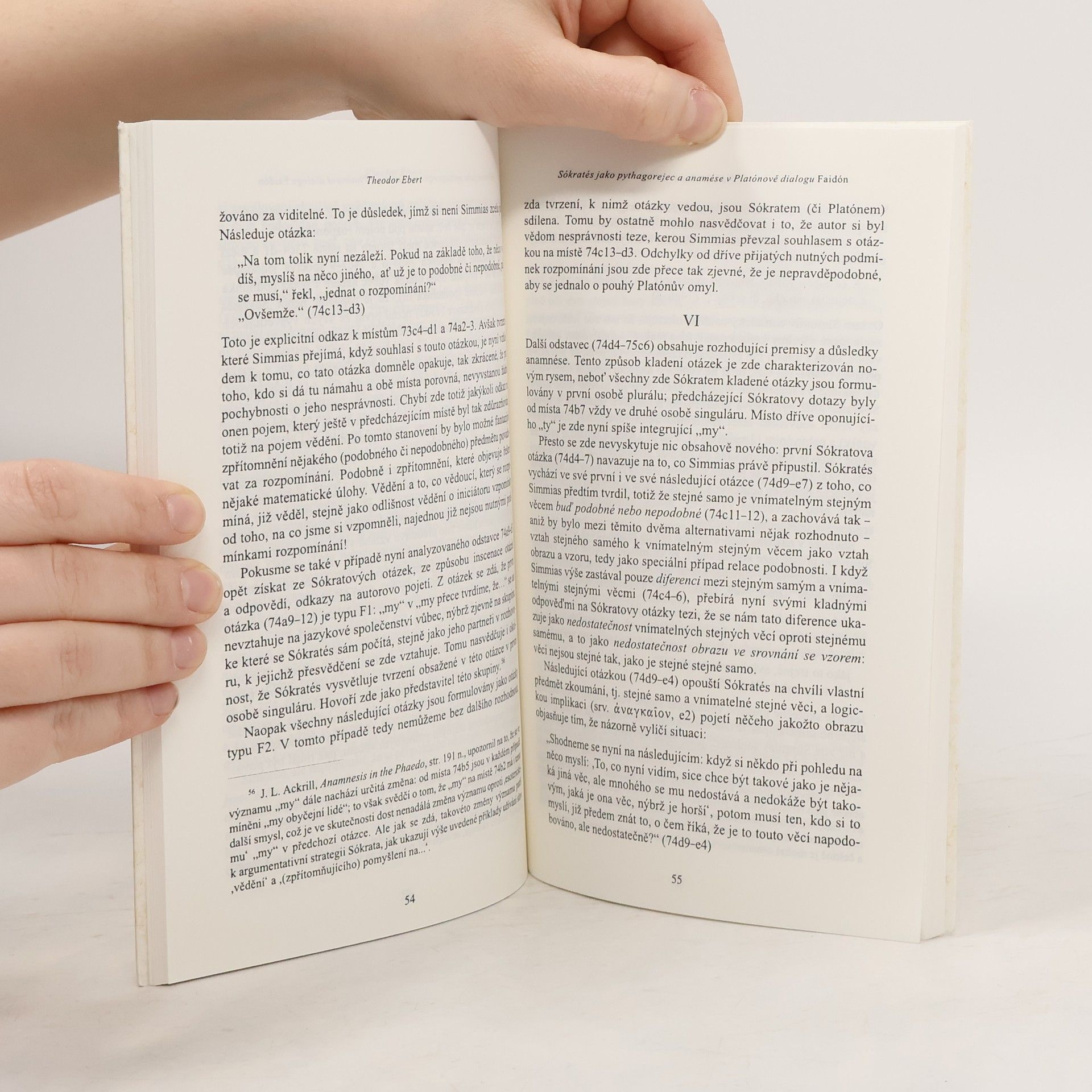 Sokrates jako pythagorejec a anamnése v Platónově dialogu Faidón, Theodor Ebert
