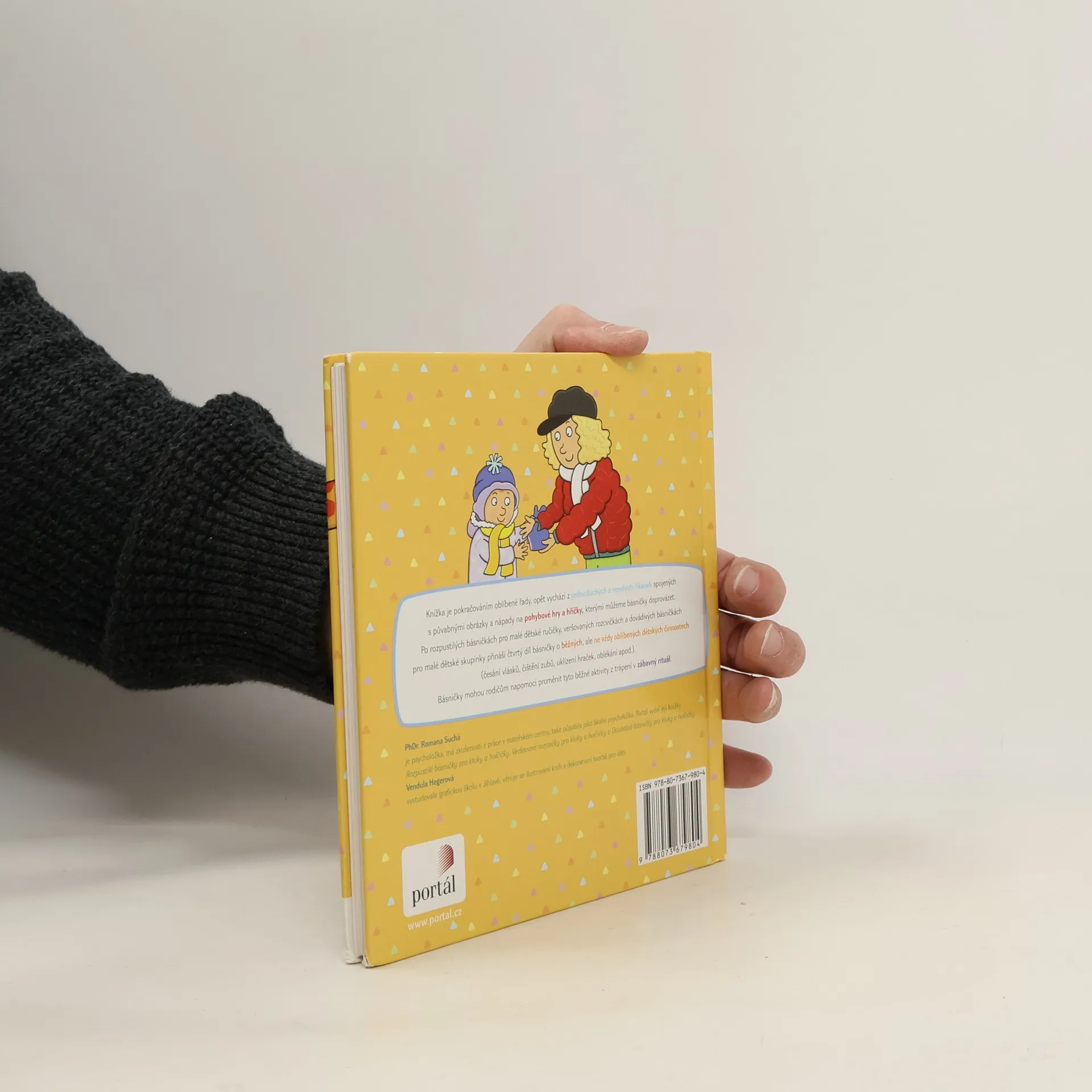 Knížka je pokračováním oblíbené řady básniček Romany Suché. Opět vychází z jednoduchých a veselých říkanek spojených s půvabnými obrázky a nápady na pohybové hry a hříčky, kterými můžeme básničky doprovázet. Po rozpustilých básničkách pro malé dětské ručičky, veršovaných rozcvičkách a dovádivých básničkách pro malé dětské skupinky přináší čtvrtý díl básničky o běžných, ale ne vždy oblíbených dětských činnostech (česání vlásků, čištění zubů, uklízení hraček, oblékání apod.). Básničky mohou rodičům napomoci proměnit tyto běžné aktivity z trápení v zábavný rituál. Knihu opět doprovázejí veselé ilustrace Venduly Hegerové.