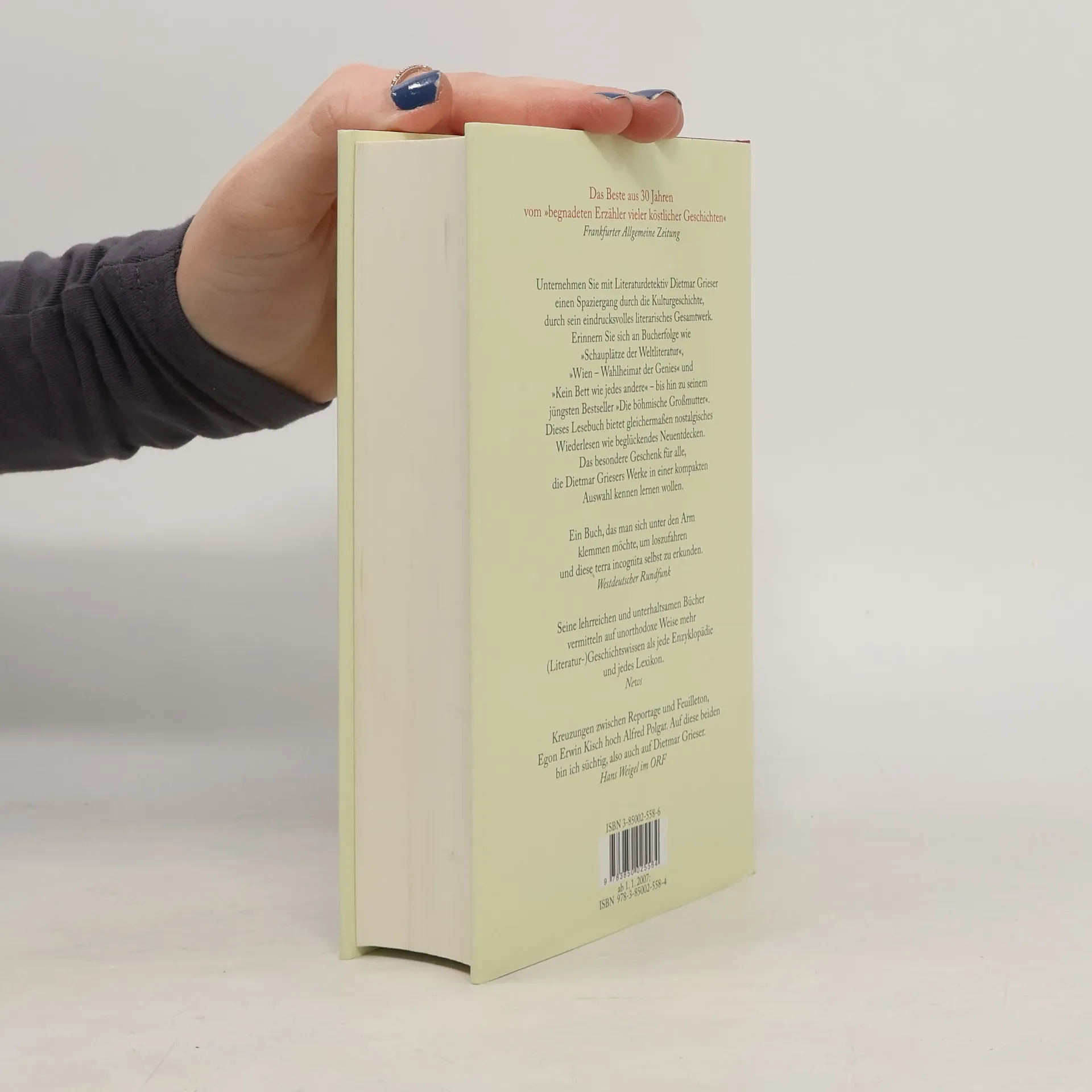 Nostalgisches Lesevergnügen und Entdeckerfreude: Das Beste aus 30 Jahren in einem Band. Das umfangreiche Werk von Dietmar Grieser umfasst mittlerweile 33 Büchern. Anlass genug, seiner mit jedem Jahr wachsenden Leserschar einen repräsentativen Überblick über die Vielfalt seines literarischen Schaffens zu ermöglichen. Dies geschieht mit diesem lang erwarteten Lesebuch, das eine oder auch mehrere Kostproben aus jedem seiner Bücher enthält und somit einen eindrucksvollen Überblick über die Vielfalt seiner Themen bietet. Ein Sammelband, in dem Dietmar Griesers Leser sich an wunderbare Geschichten und Texte erinnern können, aber auch ein verführerisches Einsteigerbuch für alle, die das Vergnügen, Dietmar Griesers Werke kennen zu lernen, noch vor sich haben.