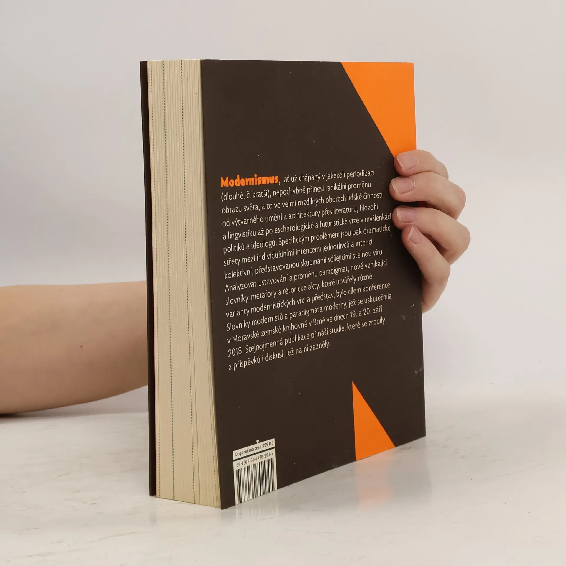 Modernismus, ať už chápaný v jakékoliv periodizaci (dlouhé či kratší), nepochybně přinesl radikální proměnu obrazu světa, a to ve velmi rozdílných oborech lidské činnosti od výtvarného umění, architektury, přes literaturu, filozofii, lingvistiku až po eschatologické a futuristické vize v myšlenkách politiků a ideologů. Specifickým problémem jsou pak dramatické střety mezi individuálními intencemi jednotlivců a intencí kolektivní, představovanou skupinami sdílejícími stejnou víru. Analyzovat ustavování a proměnu paradigmat, nově vznikající slovníky, metafory a rétorické akty, které utvářely různé varianty modernistických vizí a představ, bylo cílem konference Slovníky modernistů a paradigmata moderny, která se uskutečnila v Moravské zemské knihovně v Brně ve dnech 19. a 20. září 2018. Stejnojmenná publikace přináší studie, které se zrodily z příspěvků i diskusí, jež na ní zazněly (autoři: Kenichi Abe, Dominik Bálan, Michal Bauer, Petr Bubeníček, Veronika Černíková, Martin Dvořák, Erik Gilk, Peter Chvojka, Vera Kaplická Yakimova, Tomáš Kubíček, Marie Langerová, Vladimír Papoušek, Ondřej Pešek, Vanda Pickett, Ondřej Selner, David Skalický, Jan Staněk, Eva Štědroňová, Martin Tichý).