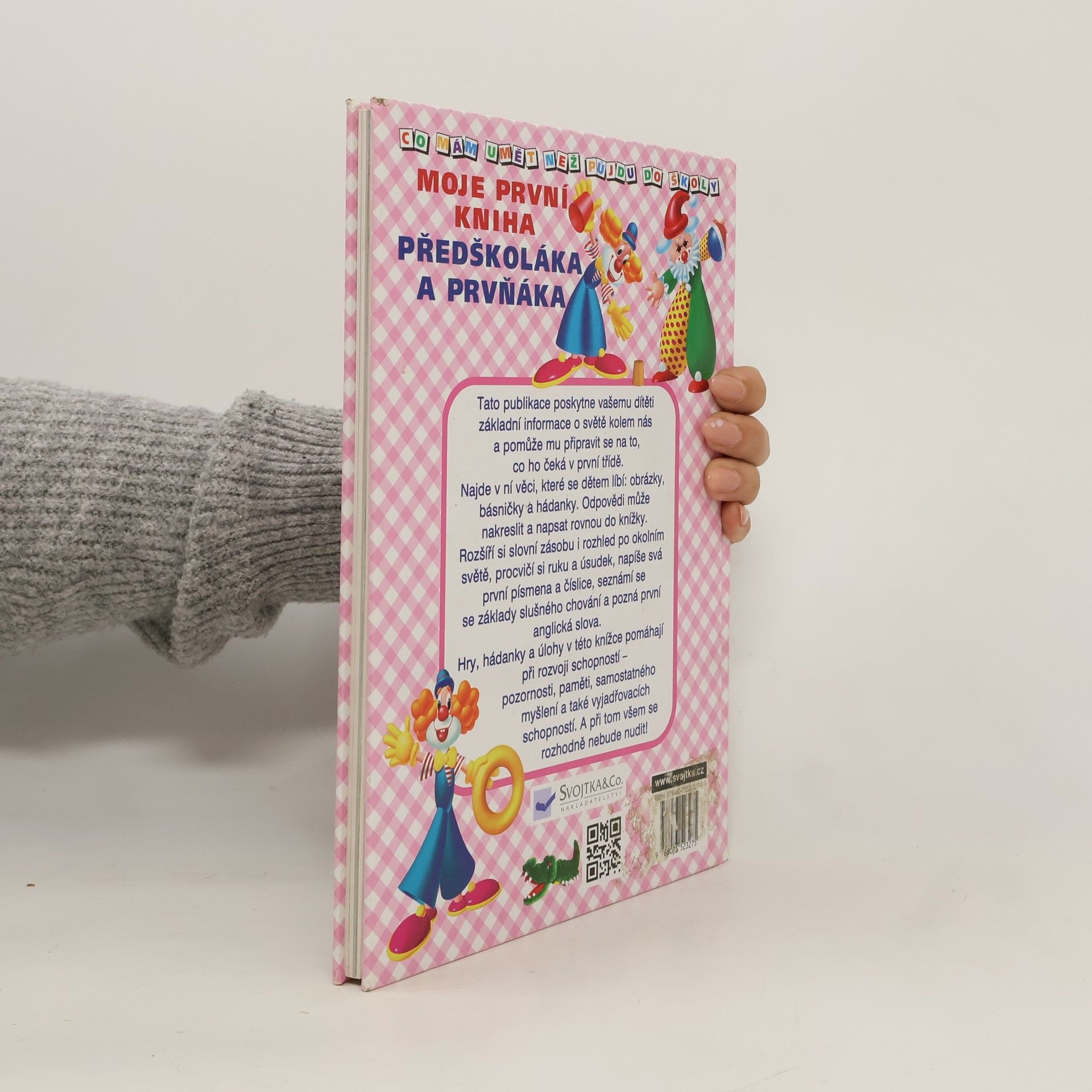(Dotisk v r. 2007 a 2009). Tato publikace poskytne vašemu dítěti základní informace o světě kolem nás a pomůže mu připravit se na to, co ho čeká v první třídě. Najde v ní věci, které se dětem líbí: obrázky, básničky a hádanky. Odpovědi může nakreslit a napsat rovnou do knížky. Rozšíří slovní zásobu i rozhled po okolním světě, procvičí si ruku a úsudek, napíše svá první písmena a číslice, seznámí se se základy slušného chování a pozná první anglická slova. Hry, hádanky a úlohy v této knížce pomáhají při rozvoji schopností - pozornosti, paměti, samostatného myšlení a také vyjadřovacích schopností. A při tom všem se rozhodně nebude nudit.