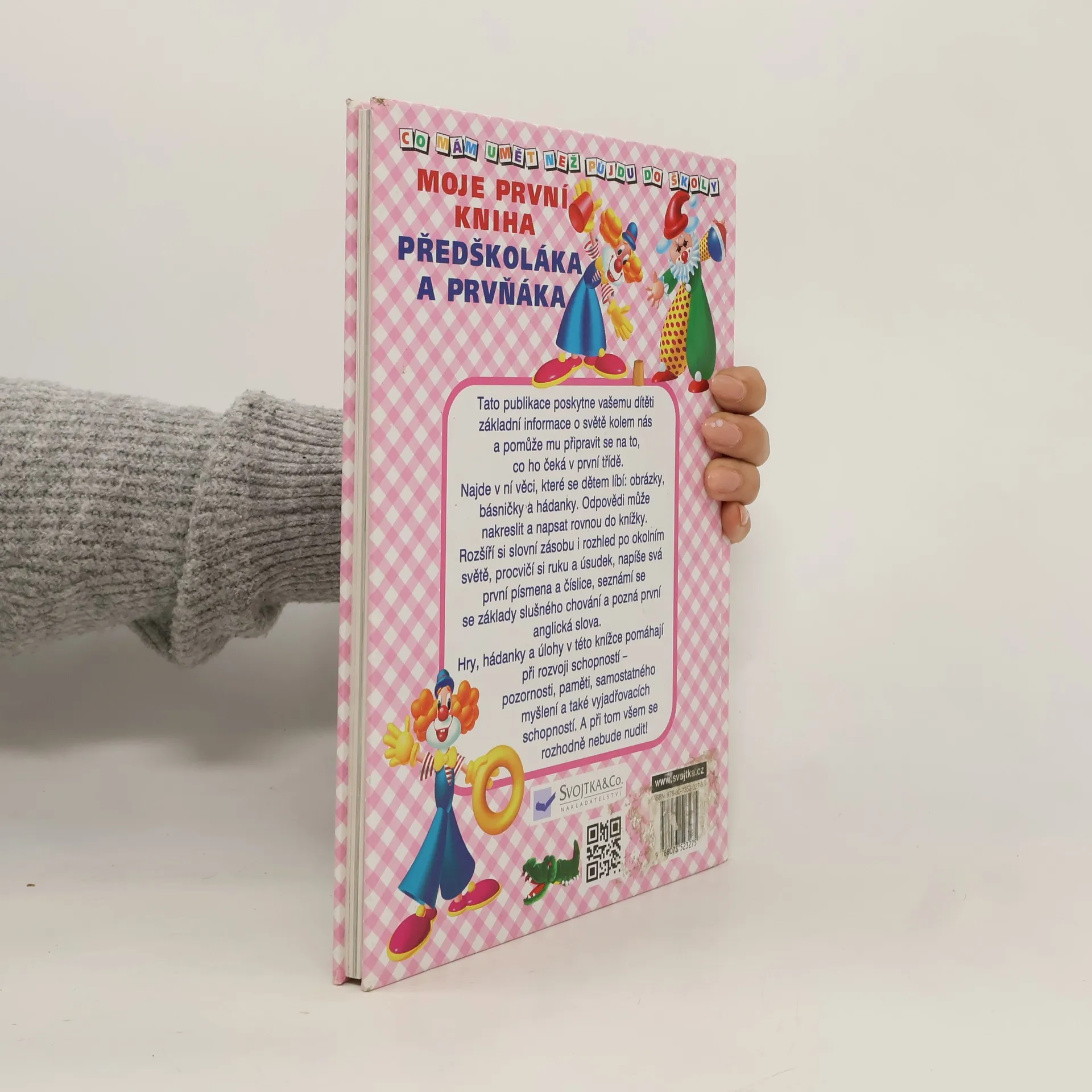 (Dotisk v r. 2007 a 2009). Tato publikace poskytne vašemu dítěti základní informace o světě kolem nás a pomůže mu připravit se na to, co ho čeká v první třídě. Najde v ní věci, které se dětem líbí: obrázky, básničky a hádanky. Odpovědi může nakreslit a napsat rovnou do knížky. Rozšíří slovní zásobu i rozhled po okolním světě, procvičí si ruku a úsudek, napíše svá první písmena a číslice, seznámí se se základy slušného chování a pozná první anglická slova. Hry, hádanky a úlohy v této knížce pomáhají při rozvoji schopností - pozornosti, paměti, samostatného myšlení a také vyjadřovacích schopností. A při tom všem se rozhodně nebude nudit.