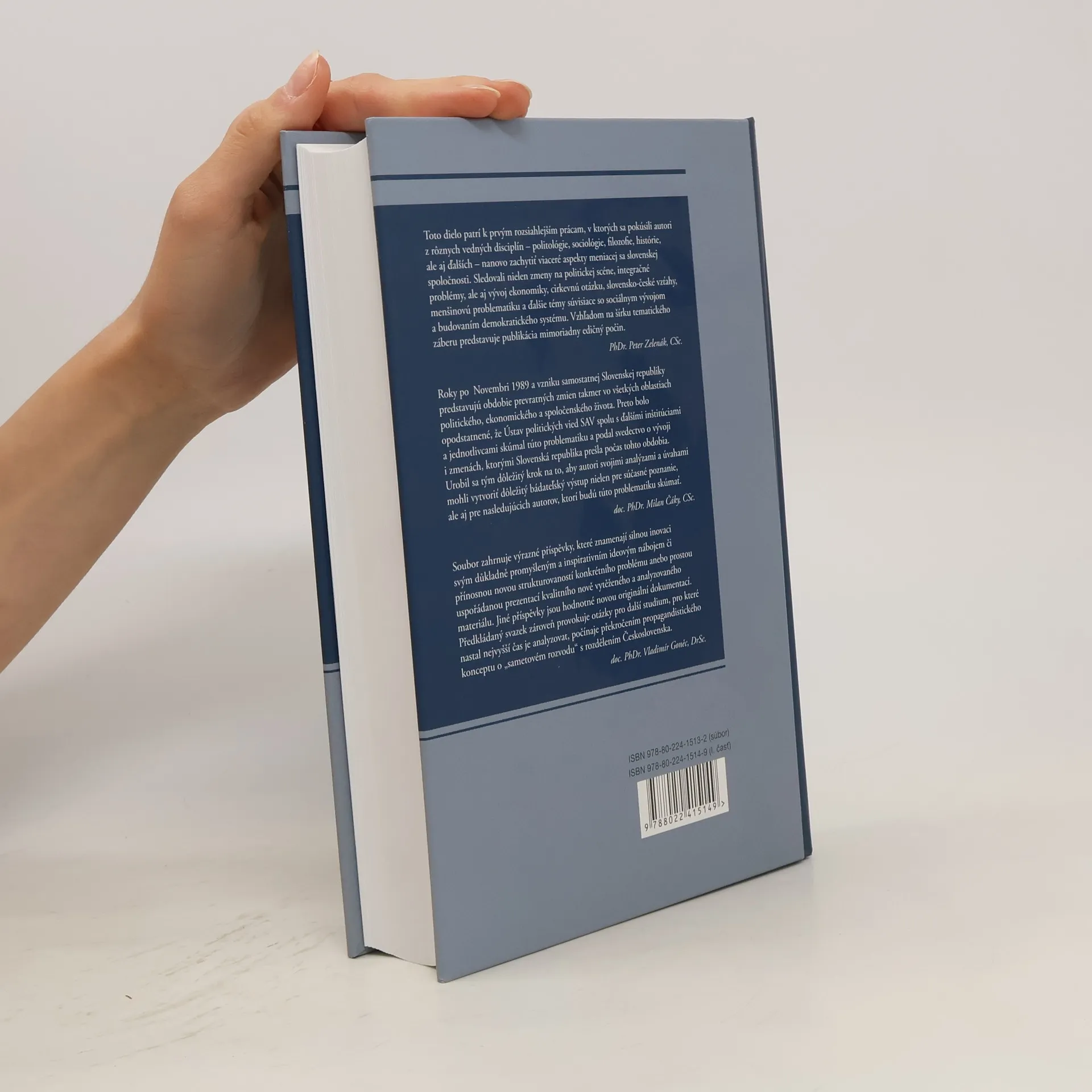 Toto dielo patrí k prvým rozsiahlejším prácam, v ktorých sa pokúsili autori z rôznych vedných disciplín - politológie, sociológie, filozofie, histórie, ale aj ďalších - nanovo zachytiť viaceré aspekty meniacej sa slovenskej spoločnosti. Sledovali nielen zmeny na politickej scéne, integračné problémy, ale aj vývoj ekonomiky, cirkevnú otázku, slovensko-české vzťahy, menšinovú problematiku a ďalšie témy súvisiace so sociálnym vývojom a budovaním demokratického systému. Vzhľadom na šírku tematického záberu predstavuje publikácia mimoriadny edičný počin.Roky po Novembri 1989 a vzniku samostatnej Slovenskej republiky predstavujú obdobie prevratných zmien takmer vo všetkých oblastiach politického, ekonomického a spoločenského života. Preto bolo opodstatnené, že Ústav politických vied SAV spolu s ďalšími inštitúciami a jednotlivcami skúmal túto problematiku a podal svedectvo o vývoji i zmenách, ktorými Slovenská republika prešla počas tohto obdobia.I. časť má 648 strán, II. časť 566 strán. Oba zväzky sa predávajú spolu.