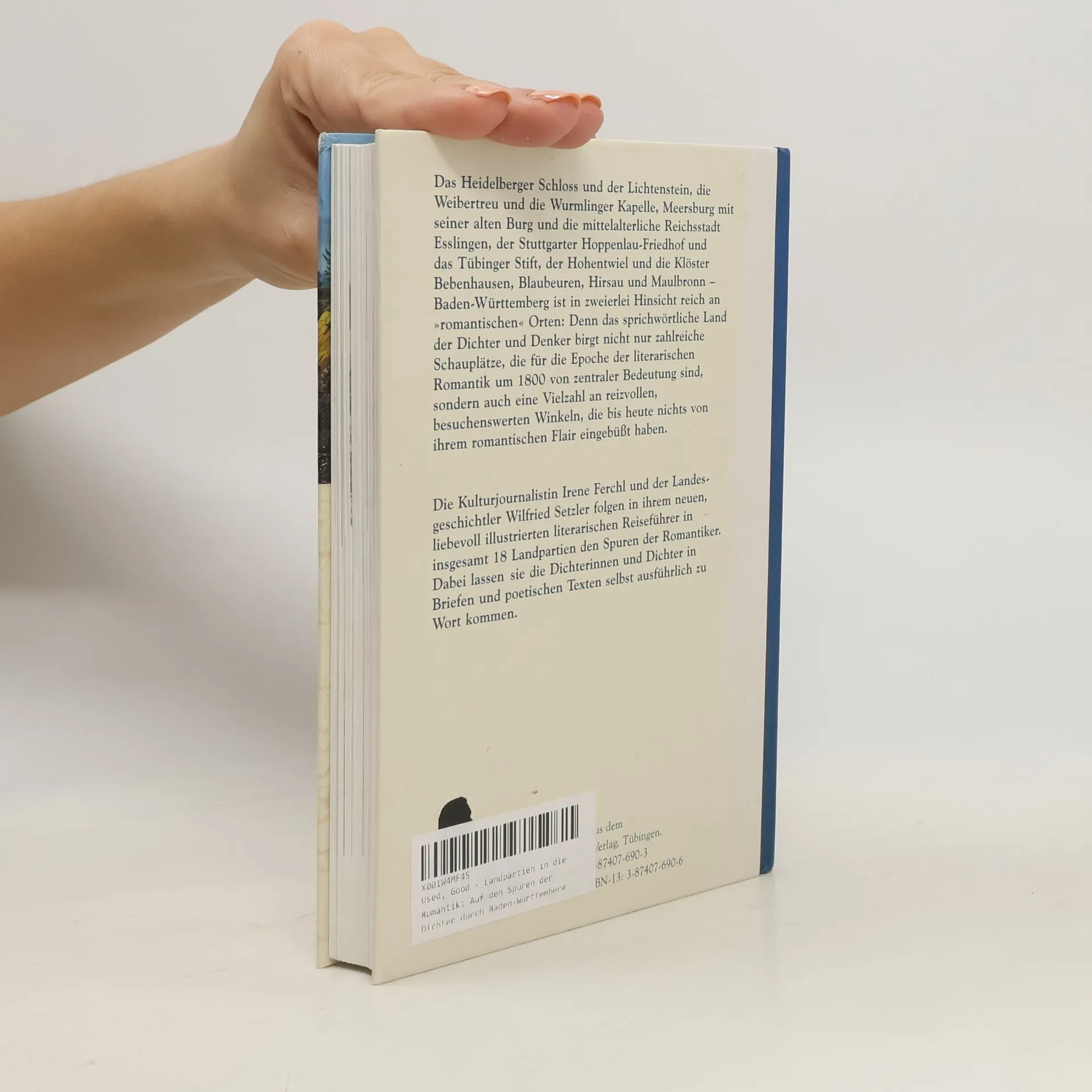 In ihrem anschaulich illustrierten literarischen Reiseführer folgen Irene Ferchl und Wilfried Setzler den Wegen der Romantiker in Baden-Württemberg. Die vergnügliche Reise führt uns von Heidelberg über Weinsberg, Cleversulzbach, Blaubeuren, Wangen im Allgäu, Meersburg, den Hohentwiel, Hausen im Wiesental, Hirsau, Baden-Baden, Karlsruhe, Maulbronn, Ludwigsburg, Stuttgart, Schloss Lichtenstein, Gomaringen, Tübingen zur Wurmlinger Kapelle und entlang des Neckars schließlich wieder zurück nach Heidelberg. Wir begegnen dabei Hölderlin, Mörike, Annette von Droste-Hülshoff, Kerner, Uhland, Schwab, Hauff, Brentano, Bettina von Arnim und vielen anderen bekannten Dichtern.