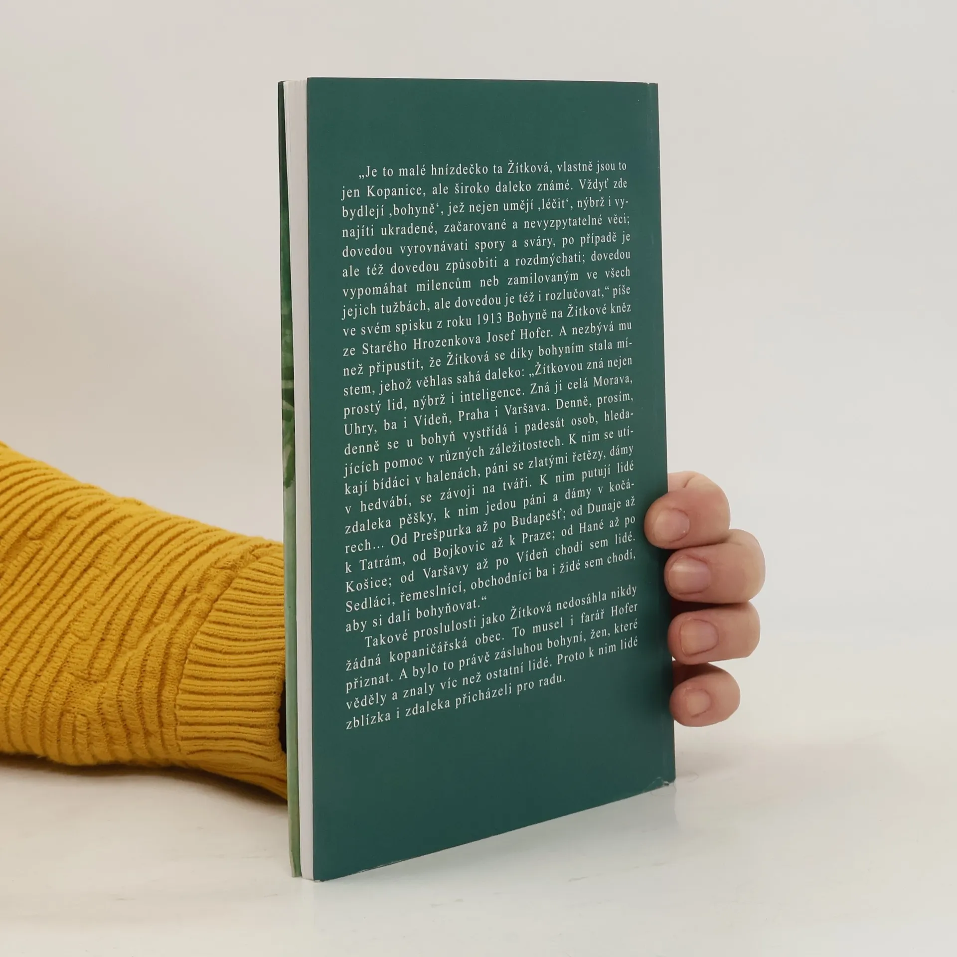 Věstit budoucnost, léčit nemoci, nalézt ztracené předměty i přičarovat lásku. Kniha inspirovaná vztahem autora k moravským Kopanicím a setkáním se slavnou žítkovskou bohyní Irmou Gabrhelovou. Ilustrace Olga Vlasáková.