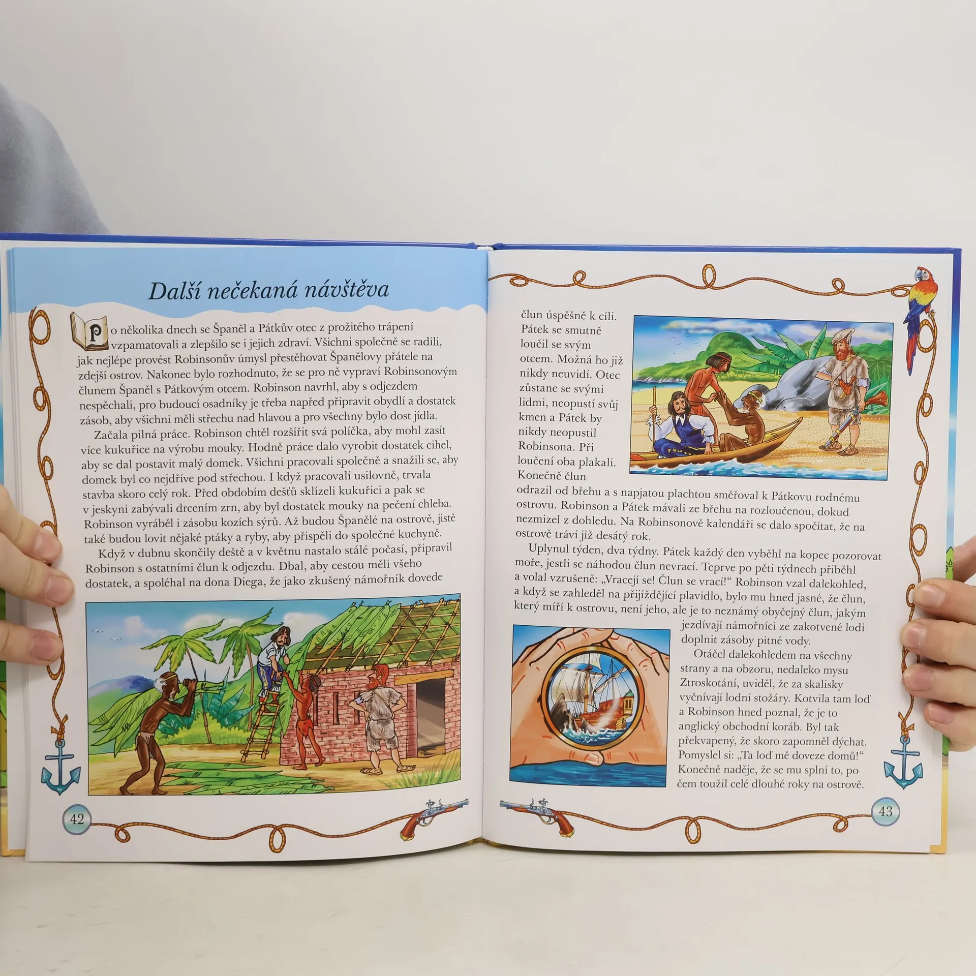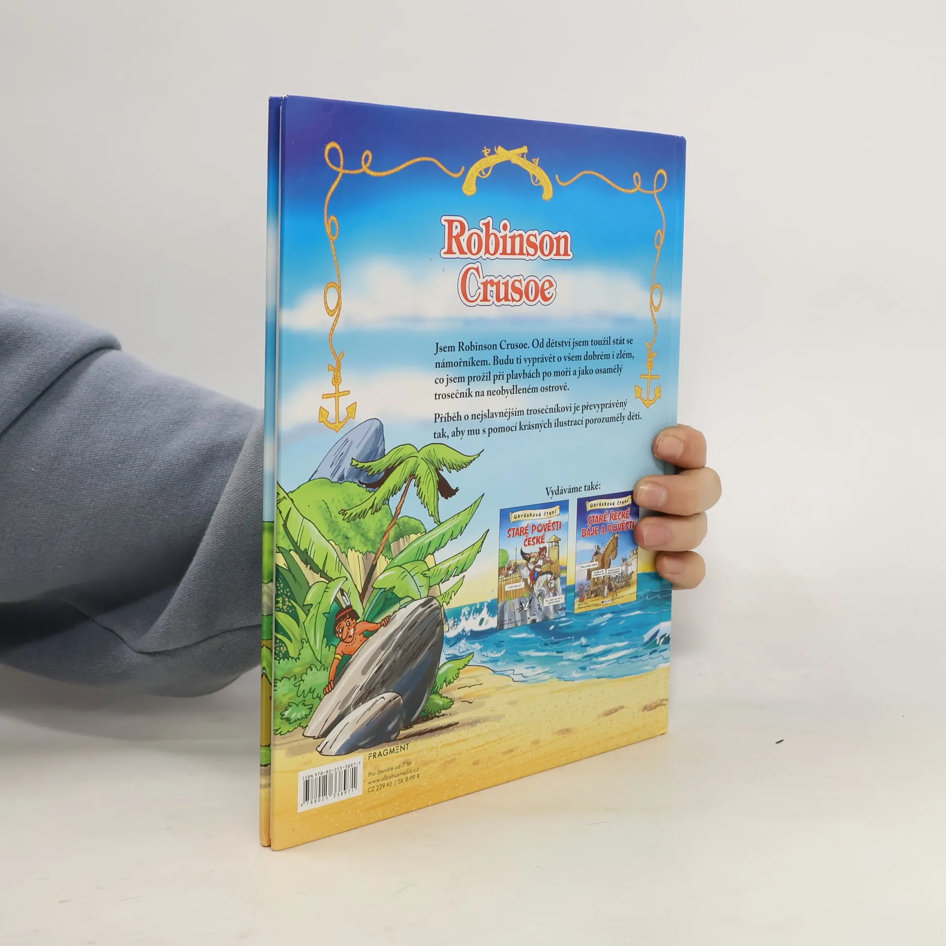 Jsem Robinson Crusoe, námořník, který ztroskotal na pustém ostrově. Stal se ze mě osamělý trosečník, čekající na záchranu. Než připluje loď, která mě vysvobodí, povím ti o svých dobrodružstvích a zážitcích. Příběh o nejslavnějším trosečníkovi je převyprávěný tak, aby mu s pomocí krásných ilustrací porozuměly děti.