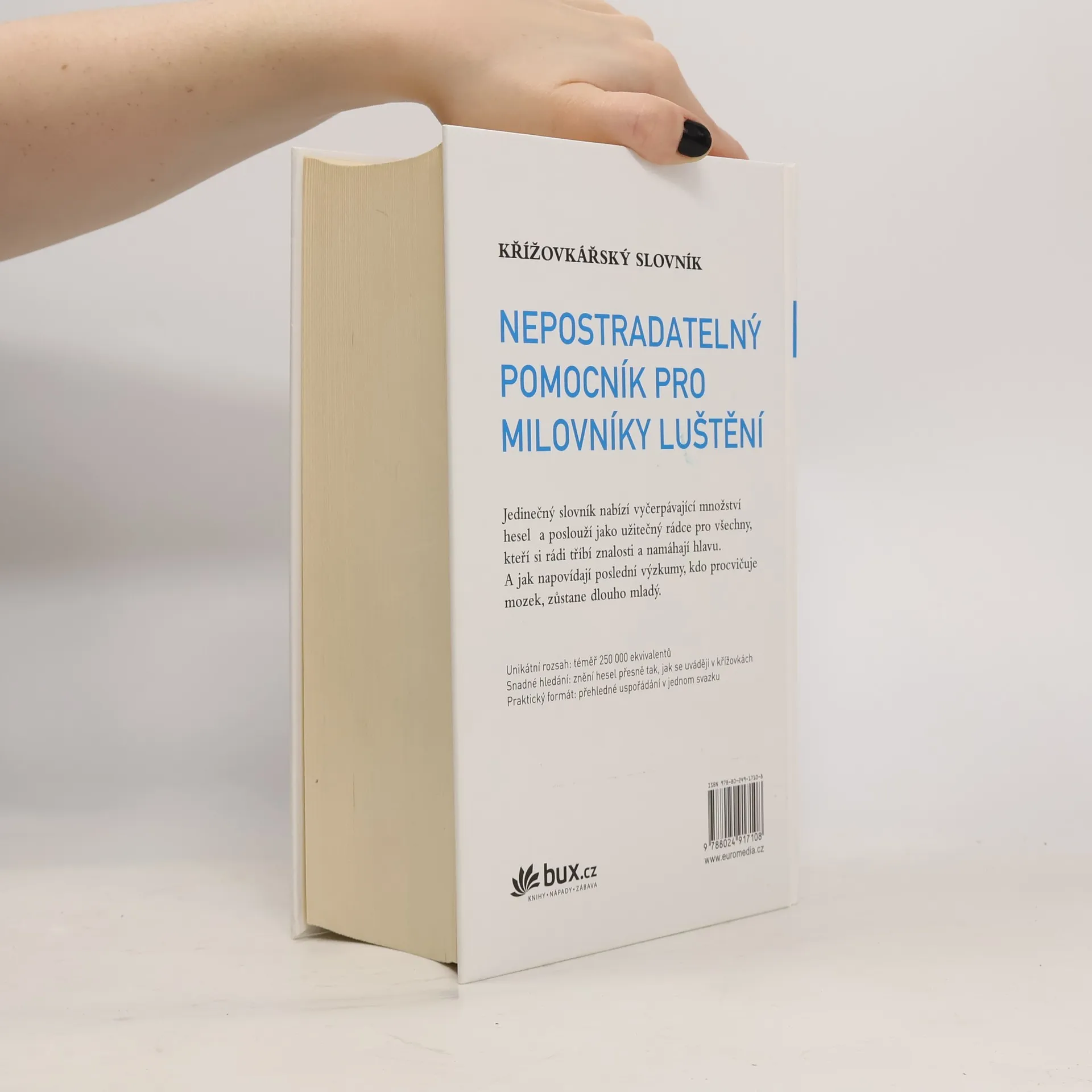 Jedinečný slovník a nepostradatelný pomocník pro milovníky luštění nabízí vyčerpávající množství hesel a poslouží jako užitečný rádce pro všechny, kteří si rádi tříbí znalosti a namáhají hlavu. A jak napovídají poslední výzkumy, kdo procvičuje mozek, zůstane dlouho mladý.