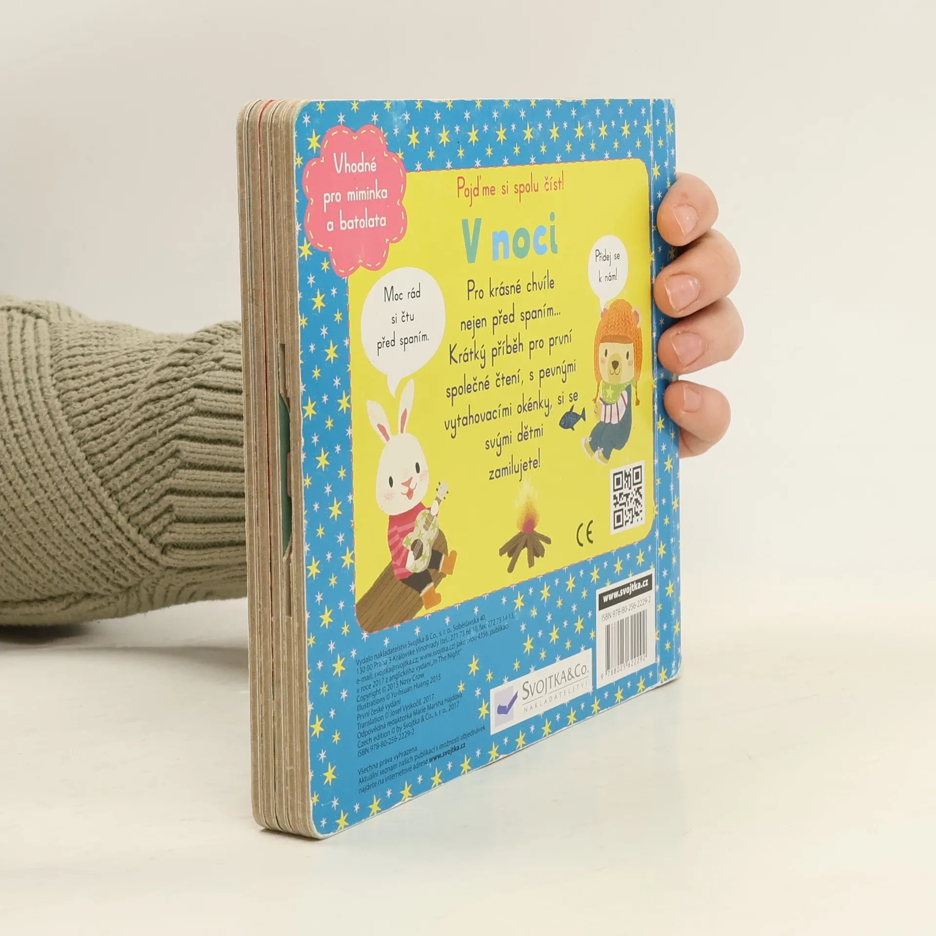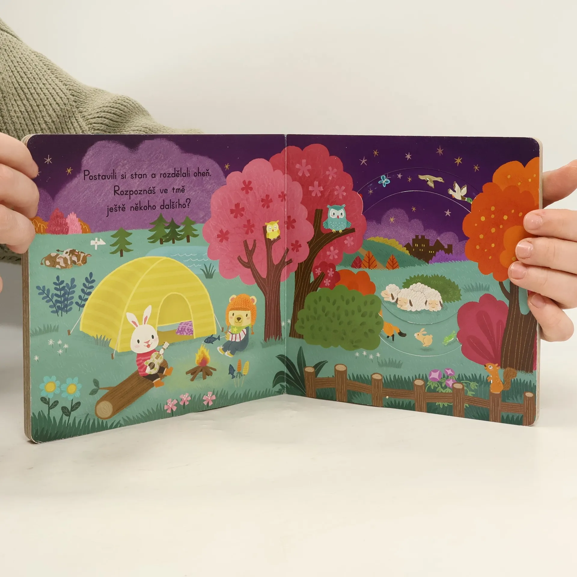 Jestlipak už se vám povedlo spát někdy pod stanem? A líbilo se vám to? Pak si tohle leporelo prostě zamilujete! Díky pevným vytahovacím okénkům si nejmenší děti zábavnou formou procvičí své motorické schopnosti. Zvířátka se chystají stanovat v lese. Tmy se vůbec nebojí, rozdělají si oheň a budou se dívat na hvězdy. Ale už je čas jít spát. Přidáš se ke kamarádům?