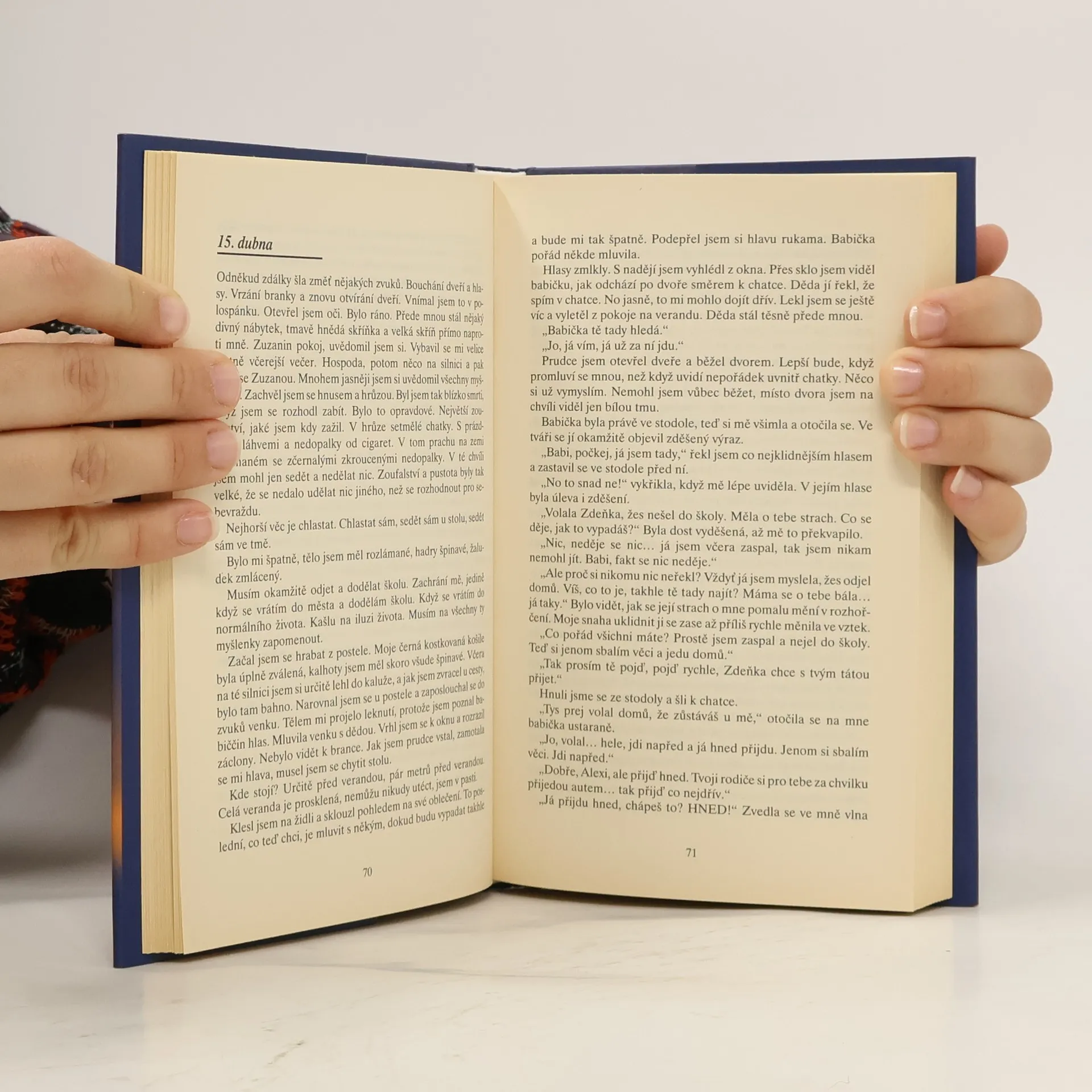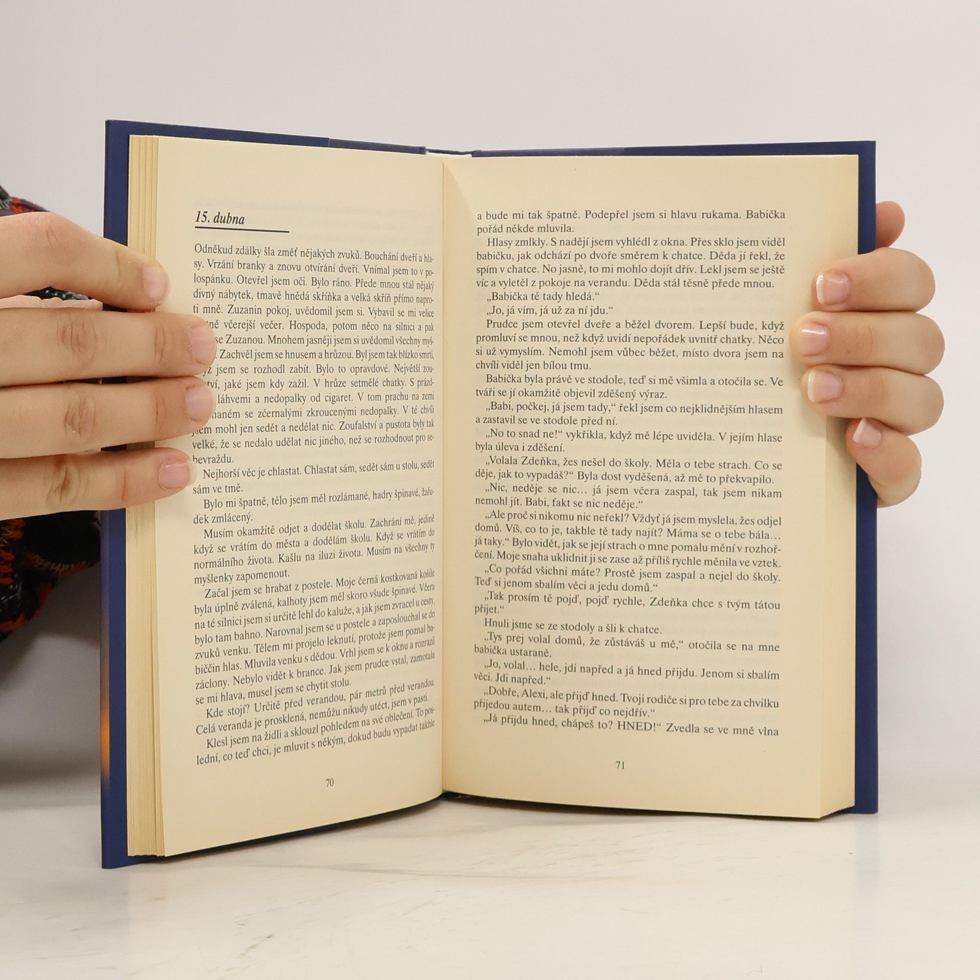 Účtování s dospíváním, první pokus o orientaci ve vlastním vnitřím světě a bolavé nalézání cest a smyslu života v příběhu dvou současných mladých lidí. Dva maturanti, charakterově a názorově pevná, osamělá a poněkud výlučná dívka Zuzana a zcela rozvrácený, hledající a v alkoholových excesech a depresích se potácející hoch Alex se spolu setkávají na vsi, kam Alex přijíždí vždy, když prchá před konflikty s rodiči i sám se sebou. Jeho i její křečovitě výlučný, z puberty se těžce vymaňující pohled na svět i na sebe sama hrdiny po krůčkách sbližuje, Alex se dopátrává zdrojů a smyslu Zuzaniny víry a Zuzana se do Alexe postupně zamilovává. Možná bezděčně, leč o to bezprostředněji vylíčená naprostá negace světa rodičů a zároveň nesamostatnost a drobné zneužívání jejich péče, týdny času nanicovatě proflákaného, to vše je podáno velmi věrohodně a čtivě.