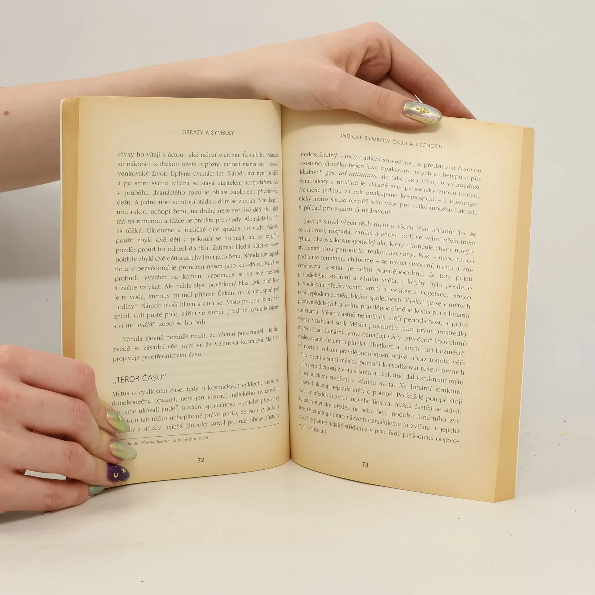 Podtitul: Esej o magicko-náboženských symbolech Mircea Eliade – jeden z nejprosnulejších interpretů náboženských tradic a praktik – v této knize ukazuje, že mýtus a symboly jsou způsoby myšlení, které nejenom předcházely racionálnímu uvažování, ale i nadále tvoří podstatnou součást lidského vědomí. Popisuje a analyzuje některé z nejvlivnějších a nejrozšířenějších symbolů, které ovládly mnohokrát a na mnoha úrovních západní i východní mytologické myšlení, např. symboliku středu, času a věčnosti, uzlů a svazování, mušlí a vodního živlu.