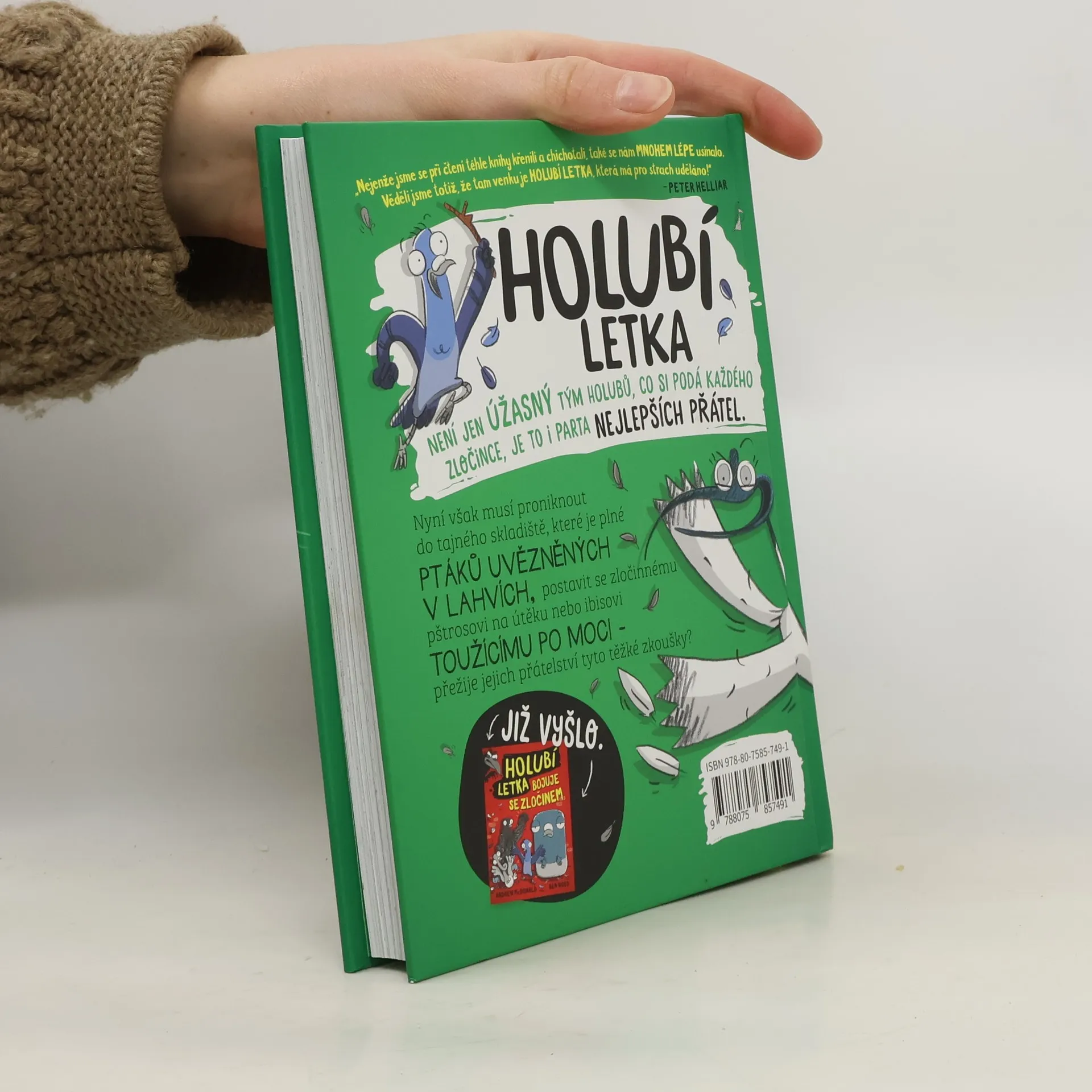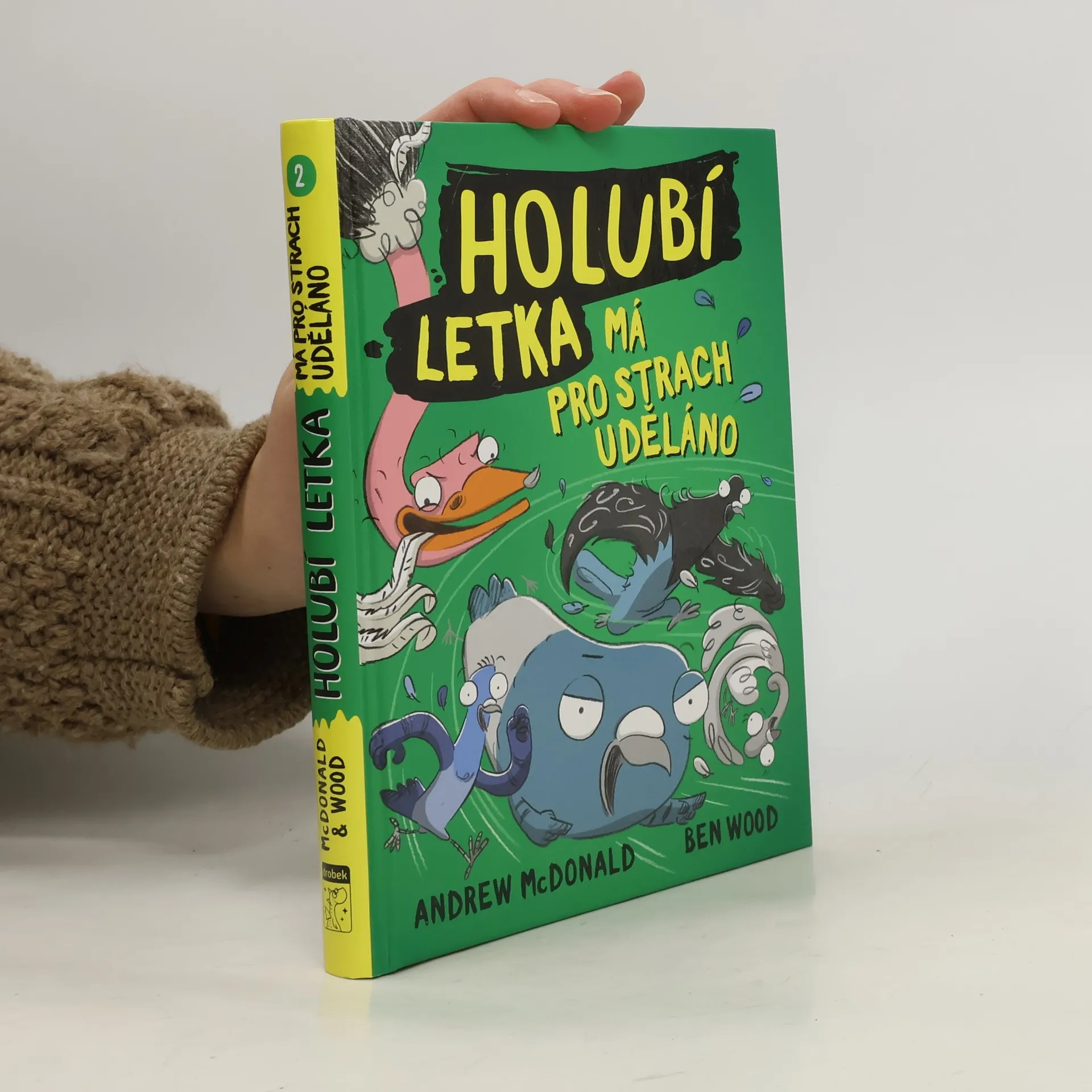 Už se vám doneslo, že vaše město střeží jednotka holubů, kteří nejenže pomocí svých holubích super schopností bojují se zločinem, ale dokonce si pochutnávají na nebezpečí? Jednotku tvoří mistr převleků Skála, ohebná Kostrčka, silná Kudrlinka a přeborník v orientaci Poš, no a samozřejmě hlava jednotky – děda Voláč. V druhé ze série knih spolu s našimi hlavními hrdiny zažijete dalších několik nezvyklých a napínavých situací – vydáte se po stopách toho, kdo vězní ptáky v lahvích, pokusíte se dopadnout zlotřilého pštrosa a nakonec se ocitnete v restauraci, ve které vás čeká nejedno překvapení. Je tedy opět víc než jasné, že společně s našimi hrdiny zas a znovu prožijete nejedno dobrodružství, vyřešíte několik záhad a dopadnete každého padoucha. Tato komiksová série knih o holubích dobrodružstvích je napsaná velmi mile a vtipně a spolu s použitými ilustracemi tvoří veselé i napínavé příběhy po všechny (zejména) malé čtenáře od šesti let.