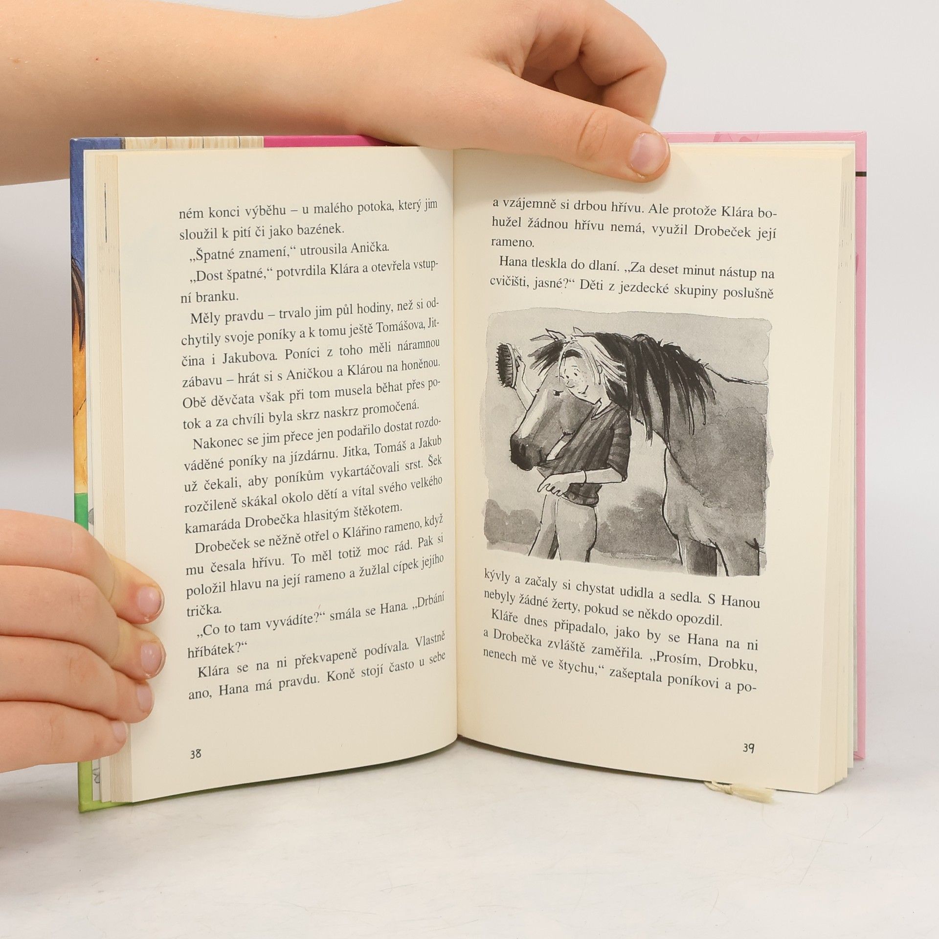Vzrušující dobrodružství z jezdeckého klubu v Hradišti pokračuje s novými hrdiny, Klárkou a jejím poníkem Drobečkem. Ale proč je Drobeček poslední dobou tolik rozpustilý, utíká ze svého stání a při hodinách jezdectví tak zlobí? Klárka se rozhodne, že bude sledovat poníka ve dne v noci, aby odhalila příčinu jeho podivného chování. Jak to všechno nakonec dopadne? Dozvíte se v nové edici Klára a Drobeček.