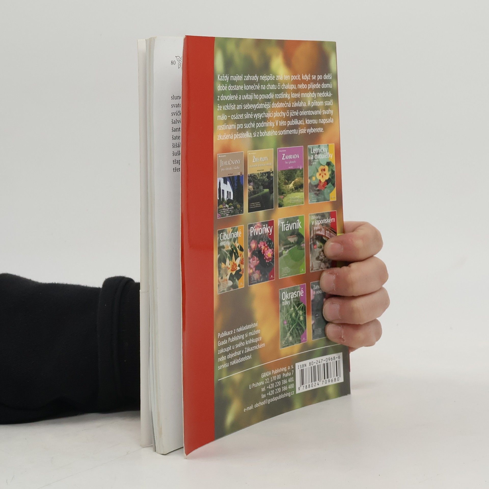 Každý majitel zahrady nejspíše zná ten pocit, když se po delší době dostane konečně na chatu či chalupu, nebo přijede domů z dovolené a uvítají ho povadlé rostlinky, které mnohdy nedokáže vzkřísit ani sebevydatnější dodatečná závlaha. A přitom stačí málo – osázet silně vysychající plochy či jižně orientované svahy rostlinami pro suché podmínky. V této publikaci, kterou napsala zkušená pěstitelka, si z bohatého sortimentu jistě vyberete. Představuje slovem i obrazem rody a druhy trvalek s květy nejrůznějších barev, jako jsou např. bělotrn, denivka, rudbekie, sléz, mydlice, mochna, mateřídouška, mák, koniklec, kohoutek, levandule a mnoho dalších, a radí jak je pěstovat a rozmnožovat.