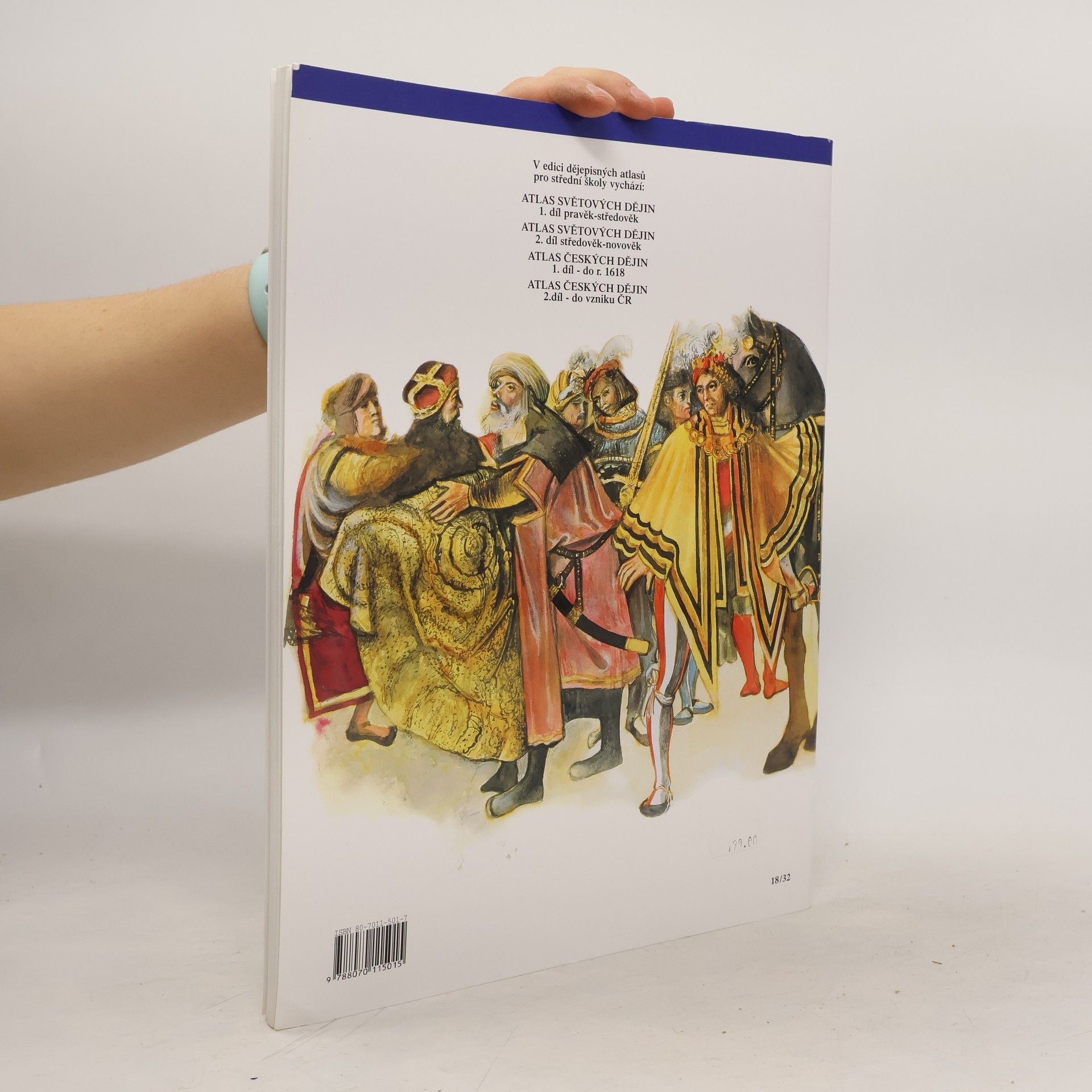 "Publikace: Atlas českých dějin 1.díl /do r.1618/ - Semotanová Eva. Atlas určený pro všechny typy středních škol a vyšší ročníky víceletých gymnázií mapuje světový vývoj od pravěku do počátku Třicetileté války. Každá kapitola je uvedena textovou dvoustranou se stručnou charakteristikou období (obraz krajiny, přehled dějin, hospodářství, kultury a společnosti). Následují stránky s barevnými historickými mapami územního vývoje českého státu, historických sídel, významných událostí, válek atd. Mapy jsou doplněny ilustracemi významných osobností, ukázkami architektonických stylů, uměleckých předmětů a přibližující každodenní život. V závěru každé kapitoly najdete časovou přímku, srovnávající nejdůležitější historické události daného období v českých zemích a v Evropě a stránku ilustrací popisující způsob života v této době.