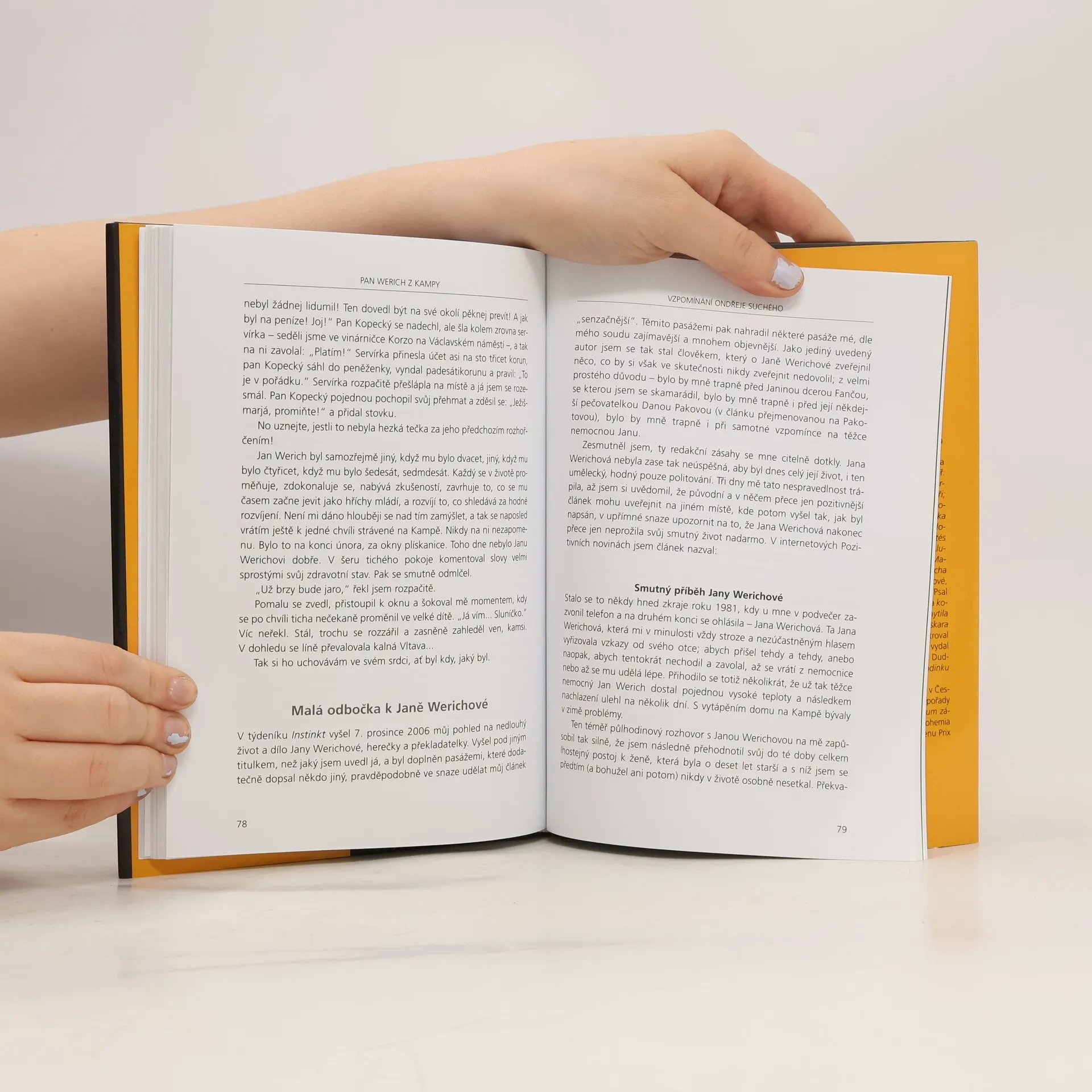 Bratři Jiří a Ondřej Suchých se nezávisle na sobě setkávali na Kampě s Janem Werichem. O těchto setkáních vydávali během uplynulých třech desetiletích svědectví v řadě článků, úvah a knižních kapitol, které teď shrnuli a doplnili o další vzpomínání. Kniha, kterou vydává nakladatelství Ikar obsahuje řadu dosud nikde nezveřejněných a často unikátních fotografií.