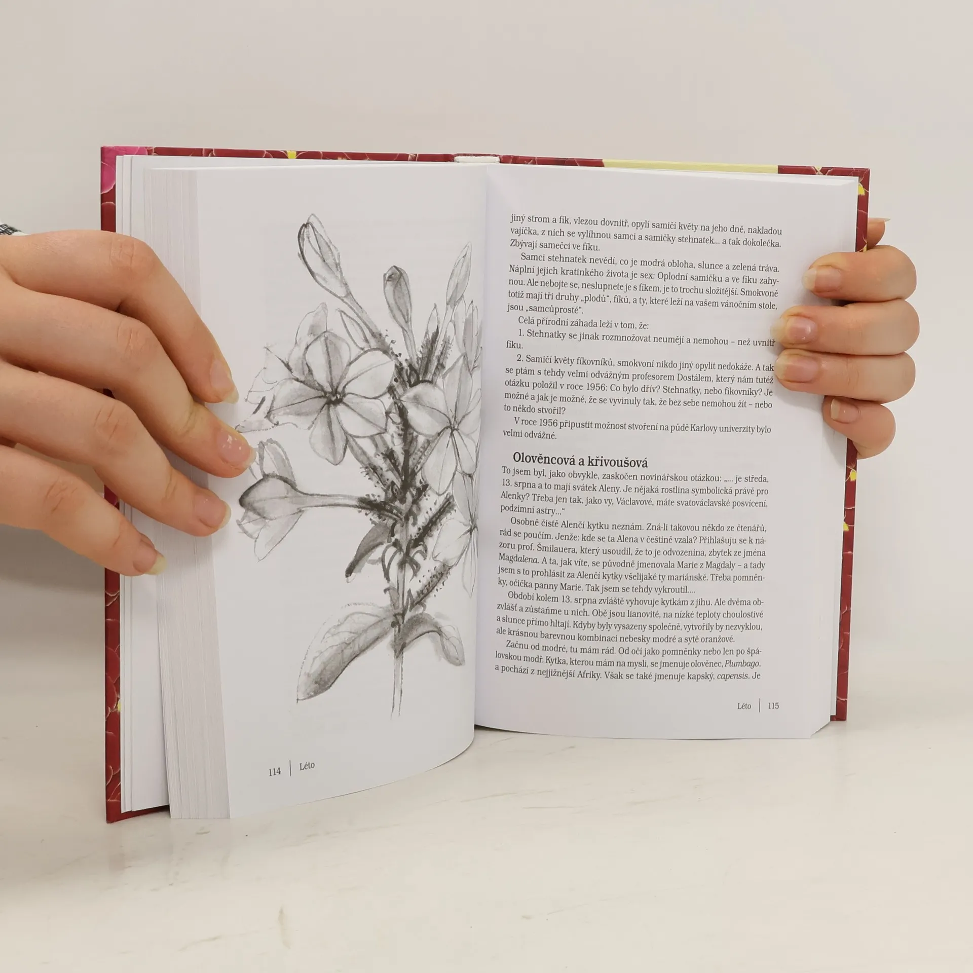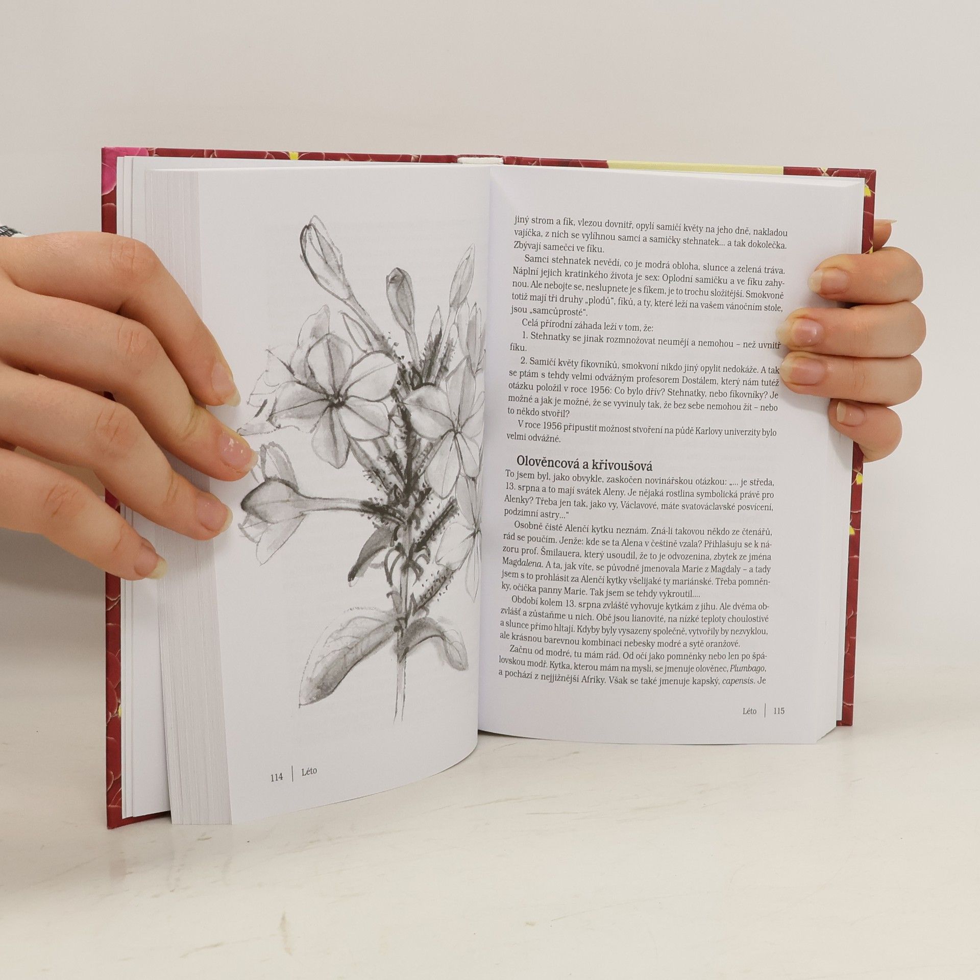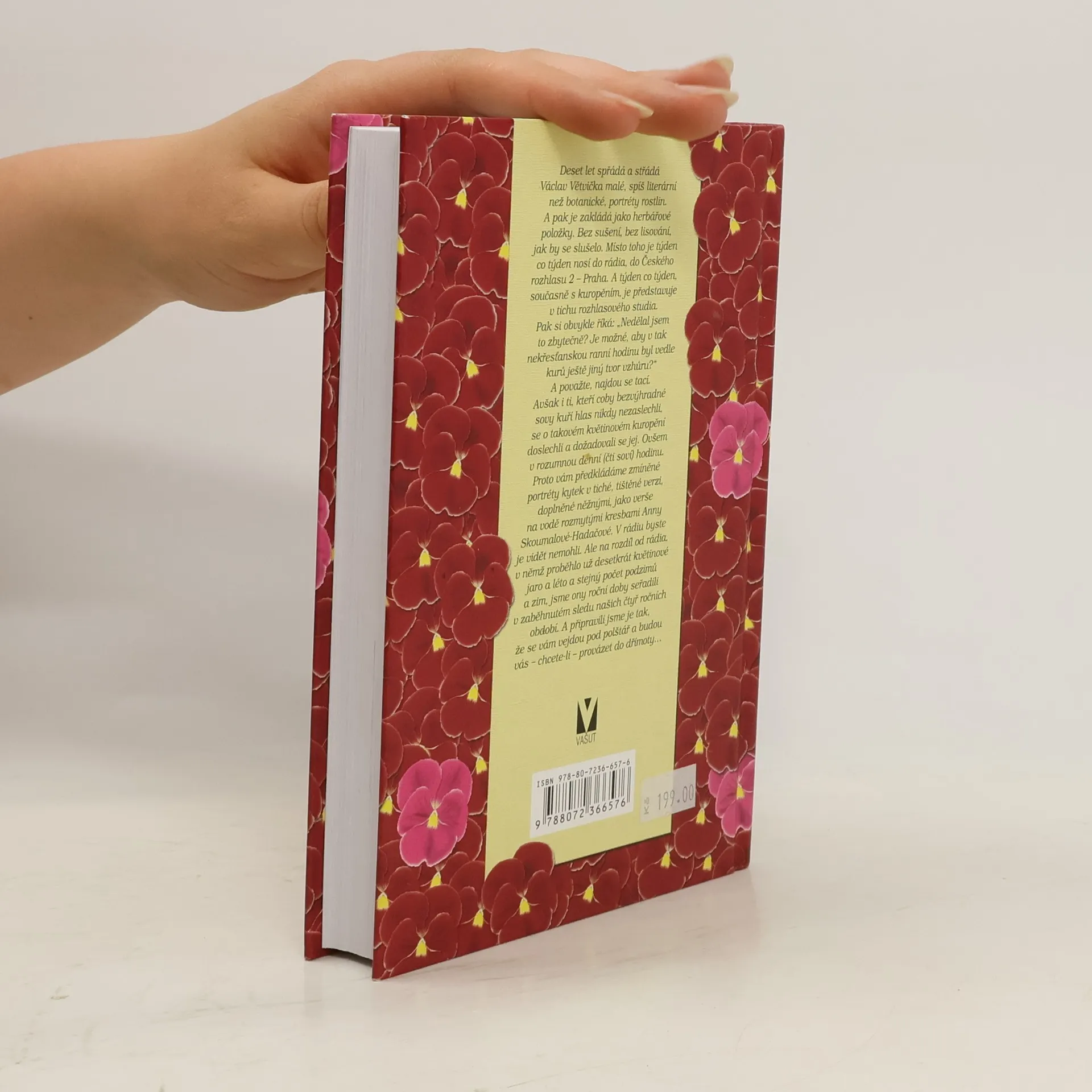 Deset let spřádá a střádá Václav Větvička malé, spíš literární než botanické, portréty rostlin. A pak je zakládá jako herbářové položky. Bez sušení, bez lisování, jak by se slušelo. Místo toho je týden co týden nosí do rádia, do Českého rozhlasu 2 - Praha. A týden co týden, současně s kuropěním, je představuje v tichu rozhlasového studia. Pak si obvykle říká: "Nedělal jsem to zbytečně? Je možné, aby v tak nekřesťanskou ranní hodinu byl vedle kurů ještě jiný tvor vzhůru?" A považte, najdou se tací. Avšak i ti, kteří coby bezvýhradné sovy kuří hlas nikdy nezaslechli, se o takovém květinovém kuropění doslechli a dožadovali se jej. Ovšem v rozumnou denní (čti soví) hodinu. Proto vám předkládáme zmíněné portréty kytek v tiché, tištěné verzi, doplněné něžnými, jako verše na vodě rozmytými kresbami Anny Skoumalové-Hadačové. V rádiu byste je vidět nemohli. Ale na rozdíl od rádia, v němž proběhlo už desetkrát květinové jaro a léto a stejný počet podzimů a zim, jsme ony roční doby seřadili v zaběhnutém sledu našich čtyř ročních období. A připravili jsme je tak, že se vám vejdou pod polštář a budou vás - chcete-li - provázet do dřímoty.