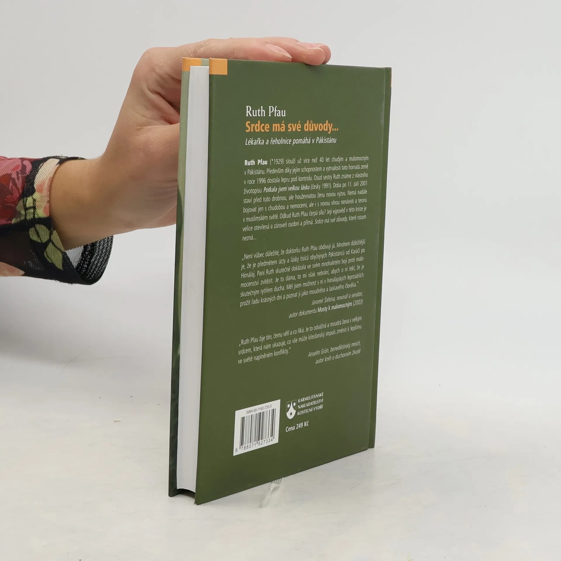 Autobiografie nevšední odvážné ženy – lékařky Ruth Pfauové. Narodila se v meziválečné době v Lipsku. Roku 1960 odešla do Pákistánu, kde začala v Karáčí pracovat na svém programu boje s malomocenstvím. V přitažlivém vyprávění přibližuje čtenáři svůj pestrý, mnohdy skutečně dobrodružný a přitom hluboce zakotvený život, který žije beze zbytku pro druhé. Dokáže vnímat každého člověka jako důstojností obdařeného a krásného Božího tvora, v němž rozeznává skutečné hodnoty i pod nánosem bídy, nemoci nebo nepřátelství. Sílu ke svému působení čerpá z hlubokého intimního vztahu s Bohem i z přátelství se svými podobně zapálenými spolupracovníky.