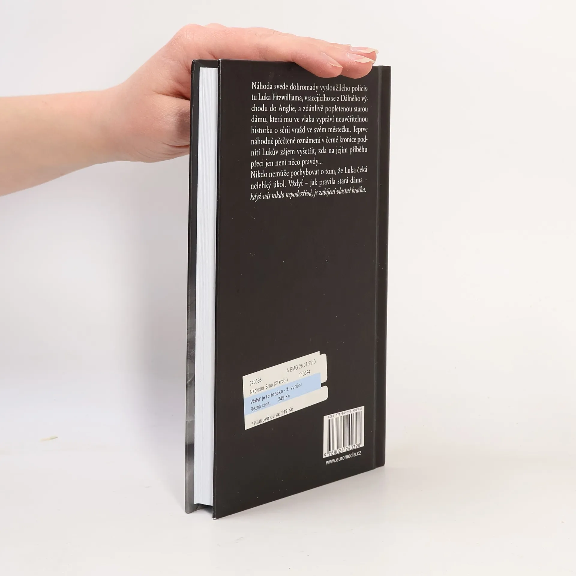 Náhoda svede dohromady vysloužilého policistu Luka Fitzwilliama, vracejícího se z Dálného východu do Anglie, a zdánlivě popletenou starou dámu, která mu ve vlaku vypráví neuvěřitelnou historku o sérii vražd ve svém městečku. Teprve náhodně přečtené oznámení v černé kronice podnítí Lukův zájem vyšetřit, zda na jejím příběhu přeci jen není něco pravdy… Nikdo nemůže pochybovat o tom, že Luka čeká nelehký úkol. Vždyť – jak pravila stará dáma – když vás nikdo nepodezřívá, je zabíjení vlastně hračka.