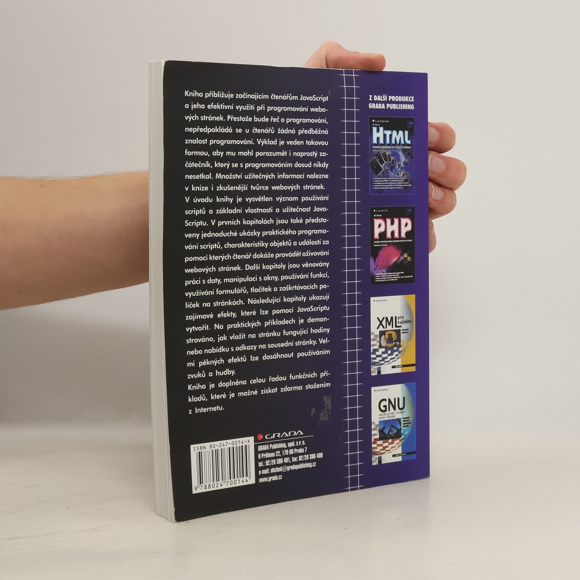 Kniha seznámí čtenáře se světem JavaScriptu a jeho efektivním využitím při programování WWW stránek. Nejedná se o klasickou referenční příručku JavaScriptu, autor vám naopak ukáže, jak snadno lze vytvářet dokonalé internetové stránky. Výklad je přizpůsoben naprostým začátečníkům, kteří se s programováním nikdy nesetkali, avšak množství cenných informací zde najdou i zkušenější tvůrci webových stránek.