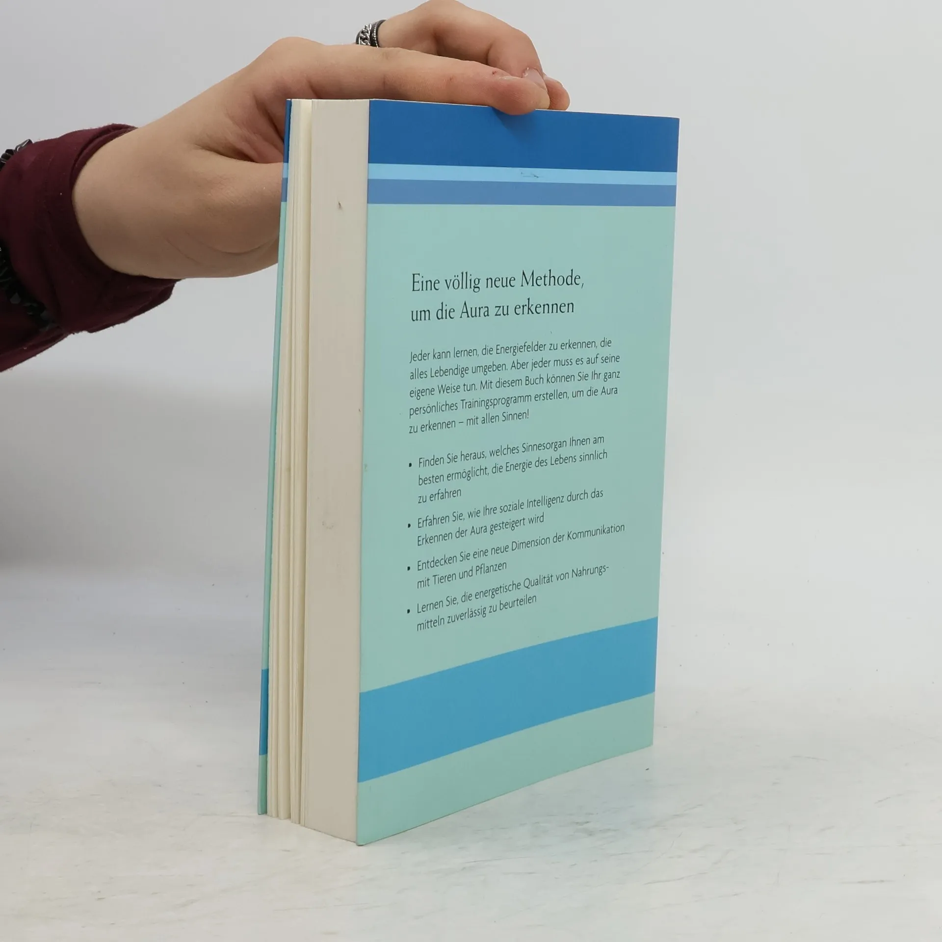 Im Prinzip kann jeder die Energiefelder erleben, die alles Lebendige umgeben. Nur: Jeder macht dabei andere Erfahrungen. Deshalb setzt dieses Buch nicht bei einer bestimmten Methode des „Aura-Sehens“ an. Zunächst wird dem Leser bewusst gemacht, in welchem Sinnesbereich bei ihm selbst Ansätze zum Erkennen der Aura vorhanden sind. Darauf aufbauend, kann sich jeder sein eigenes Trainingsprogramm entwerfen, um die Aura zu erkennen - mit allen Sinnen! Jeder kann für sich selbst herausfinden, welches Sinnesorgan ihm am ehesten ermöglicht, die Aura zu erfahren - mit welchen Sinnesorganen auch immer. Das Erkennen der Aura ist kein esoterischer Selbstzweck, sondern eine enorme Chance zur Entwicklung sozialer Intelligenz und für persönliches Wachstum. Für die eigene Ernährung ergeben sich ganz neue, wertvolle Erkenntnisse, da man die energetische Qualität von Nahrungsmitteln zuverlässig zu beurteilen lernt. Die Kommunikation mit Tieren und Pflanzen gewinnt eine ganz neue, tief befriedigende Dimension.