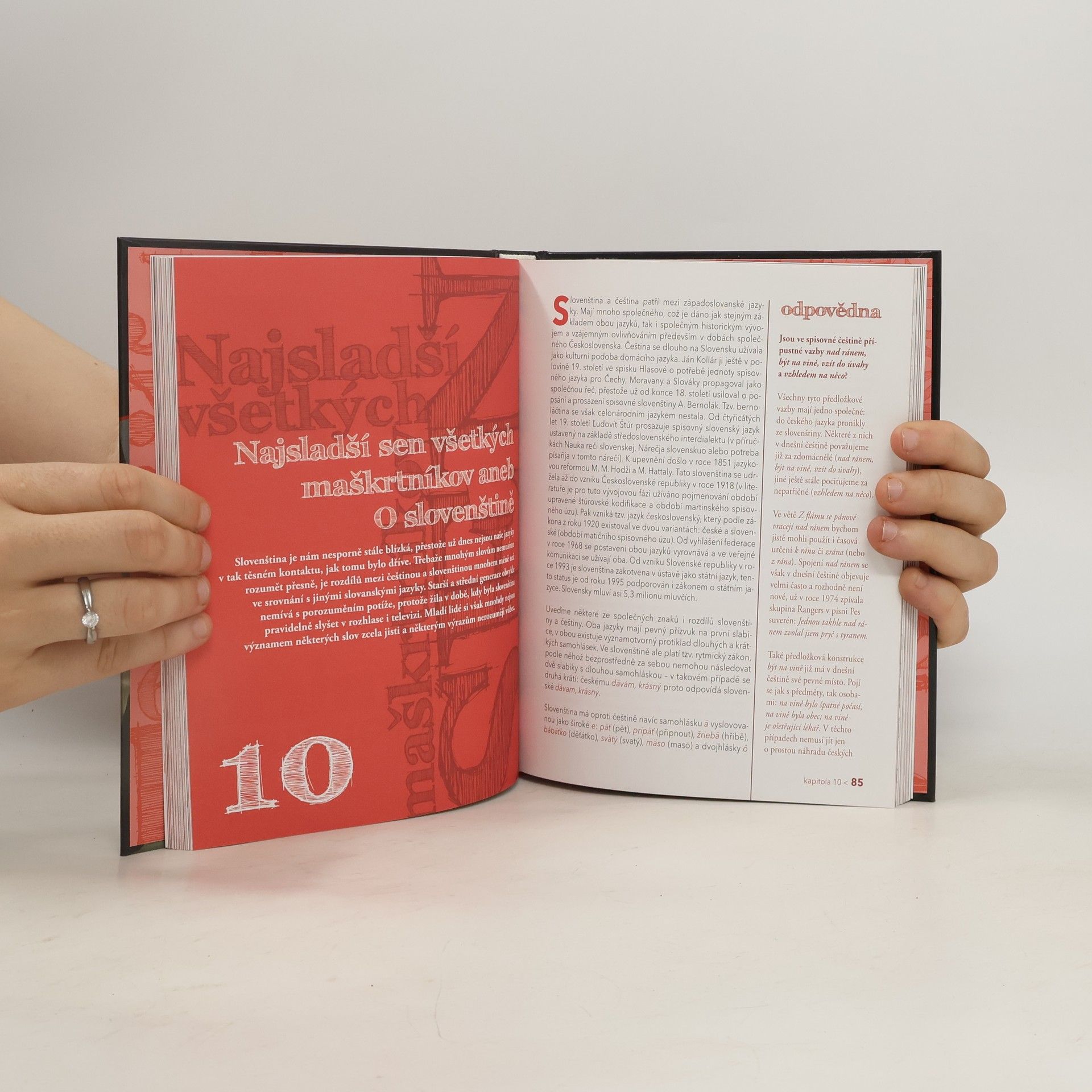 Knížka O češtině 3 z volné ediční řady k televiznímu cyklu O češtině vás znovu lehce a hravě vtáhne do kouzel a tajů naší mateřštiny. Jak vznikají nová slova a přenesená pojmenování, jak a proč pojmenováváme některá města, země, státy, hory? Zopakujete si, jak se vyvarovat častých chyb při psaní s a z, jak psát správně velká písmena nejen v názvech úřadů a institucí, ale také ve jménech živých bytostí. A nejen to! O svém vztahu k českému jazyku opět promluví známí a populární hosté pořadu.
