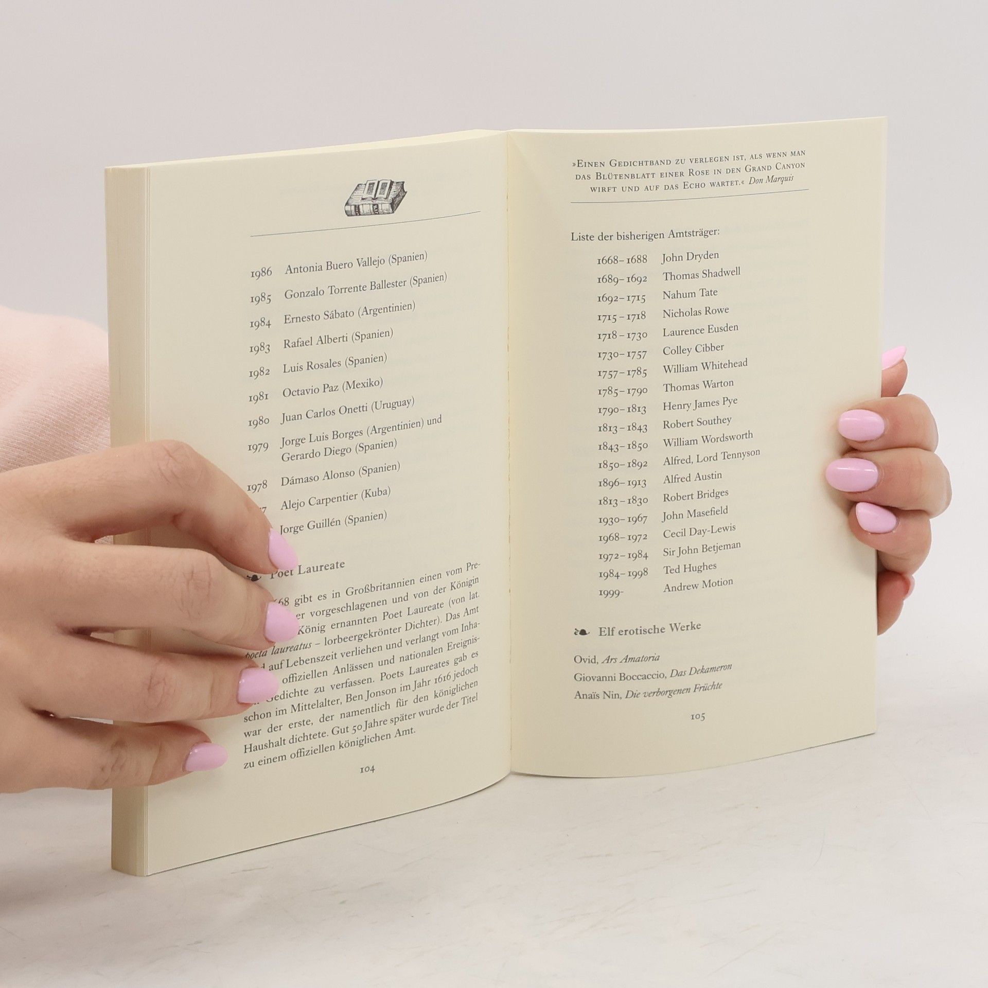Buchbegeisterung findet sich auf Schritt und Tritt in Lesezirkeln, Buchrezensionen, auf literarischen Webseiten, in Buchhandlungen, in Buchgemeinschaften, Bibliotheken, bei Bibliophilen, Bücherwürmern und gewöhnlichen Lesern wie Ihnen und mir. Trotz all der neuen, sich gegenseitig konkurrierenden Medien am angeblichen Ende der Gutenberg-Galaxie breitet sich die Bibliomanie fröhlich weiter aus. Die vorliegende Sammlung literarischer Fakten und Kuriositäten lässt diese Begeisterung hochleben.