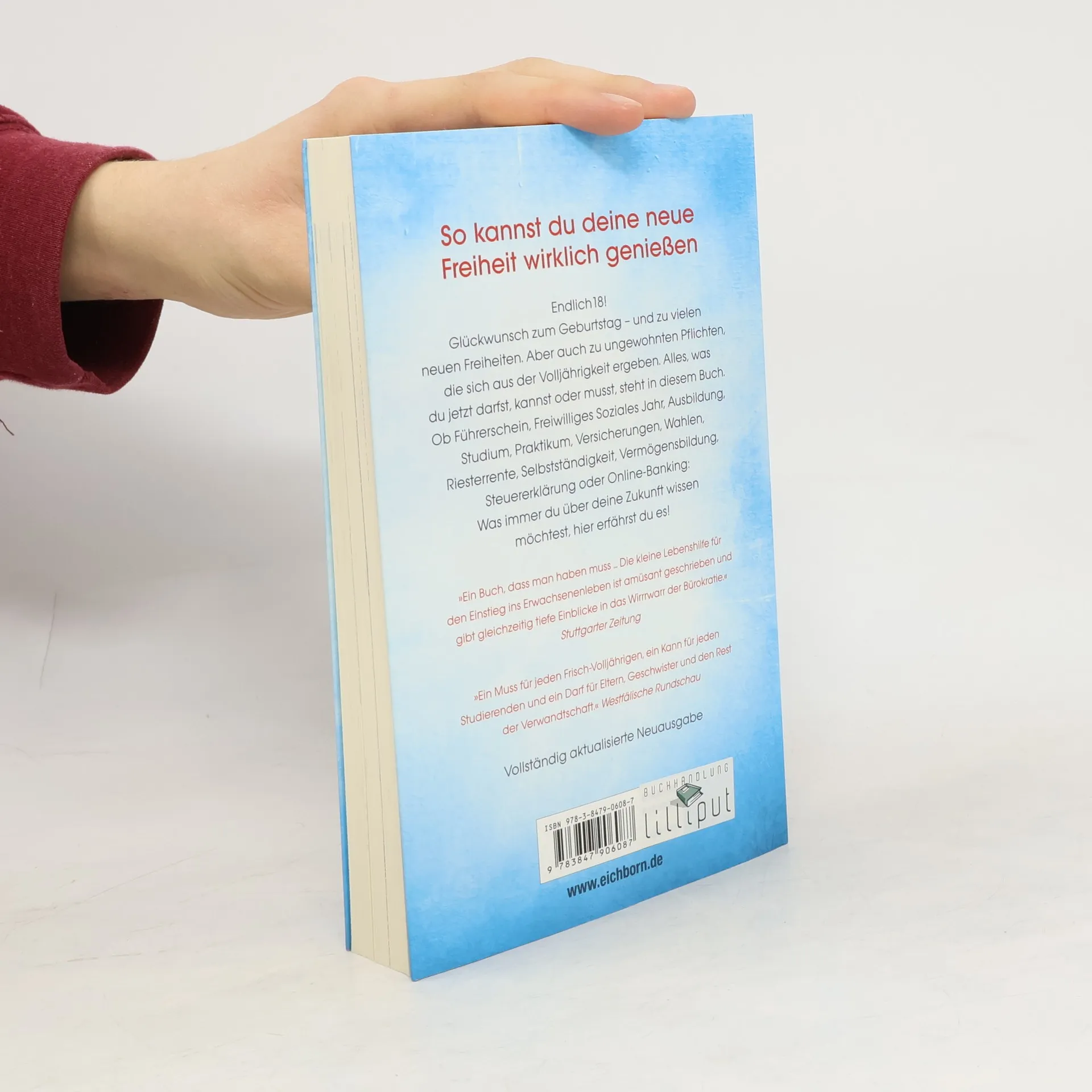 18! Glückwünsch zu vielen neuen Freiheiten. Aber auch zu Pflichten und Verantwortungen, die sich aus der Volljährigkeit ergeben. Alles, was du jetzt darfst, kannst oder muss, steht in diesem praktischen Ratgeber: Führerschein, Ausbildung und Freiwilliges Soziales Jahr, Studium oder der Weg ins Ausland, Versicherungen, Rentenplan oder Selbstständigkeit, Vermögensbildung, Steuererklärung oder Online-Banking: Was immer du über deine Zukunft wissen kannst, steht in diesem Buch.