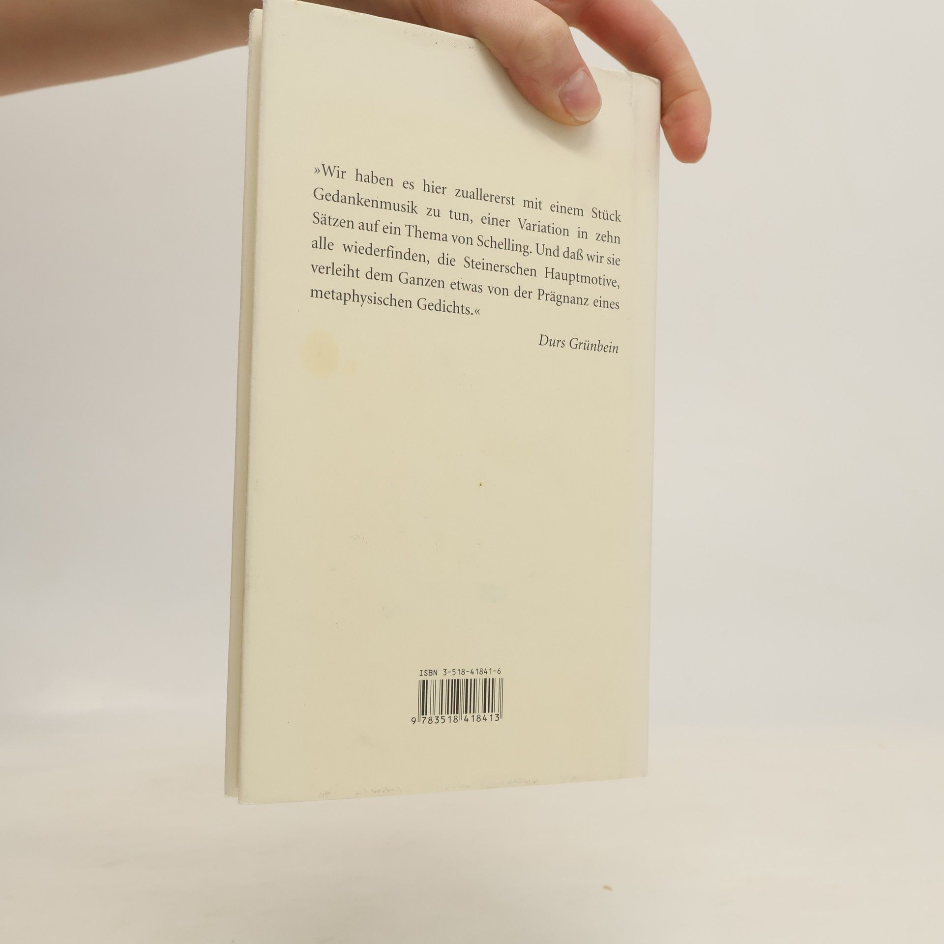 Anwesend waren Traurigkeit, tristitia oder tristesse in George Steiners Prosa seit jeher: als Gedanke, Thema und Gestimmtheit. Nun aber stellt er sie, von Schelling ausgehend, in den Mittelpunkt einer Meditation über Glanz und Elend der Reflexion. Grundiert ist alles Denken durch Schwermut, die in jedem Gedanken vernehmbar bleibt und sich fortpflanzt – so die von Steiner gewählte kosmische Analogie – wie das Hintergrundrauschen als Echo des »Urknalls «. Zweiflerisch ist dieses Denken und durchdrungen vom Gefühl seiner Vergeblichkeit. Es ist unberechenbar und heillos individuell, verschwenderisch und kreisschlüssig, eingeschränkt in den Grenzen der Sprache, axiomatisch, neurophysiologisch determiniert. Es ist, als »Großes Denken«, weit entfernt von Mehrheitsentscheidungen und allgemeiner Anerkennung. Es ist aussichtslos, führt schließlich auf nichts. Und doch ist es die einzig menschenwürdige Anstrengung. George Steiners Schrift ist eine Variation in zehn Sätzen auf ein Thema von Schelling, das Produkt einer persönlichen Ästhetik, ein Stück Gedankenmusik, ein logisches Gedicht.