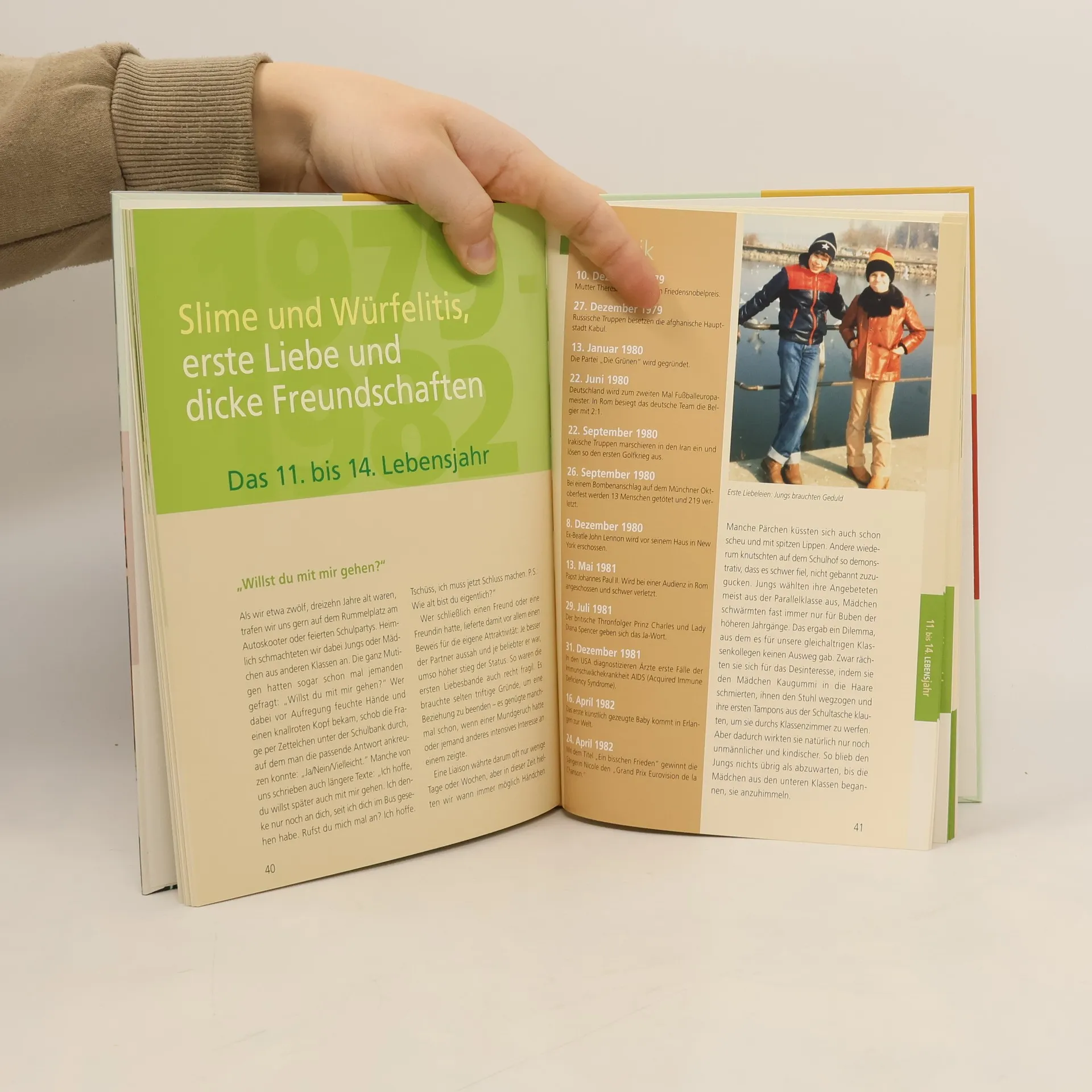 Aufgeregt und erwartungsvoll, so blickten wir damals in die Zukunft! Erinnern Sie sich mit uns an die ersten 18 Lebensjahre – an Ihre Kindheit und Jugend! Jahrgang 1969 – das waren die Kinder der Hippie-Ära. Der erste Mensch betrat den Mond, Hippies trafen sich in Woodstock und unsere Eltern bekamen nur mit Trauschein eine Wohnung. Wir sind die Wunschkinder im Pillenknick und wuchsen in eine Welt mit Kinderläden, drei Fernsehprogrammen, grellbunten Tapeten, Schlaghosen und Prilblumen hinein. Nach dem Unglück von Tschernobyl aßen wir jahrelang keine Pilze mehr, schrieben über Boris Becker Aufsätze und bekamen zu Nenas „99 Luftballons“ unseren ersten Kuss. Uns wirft so leicht nichts mehr um.