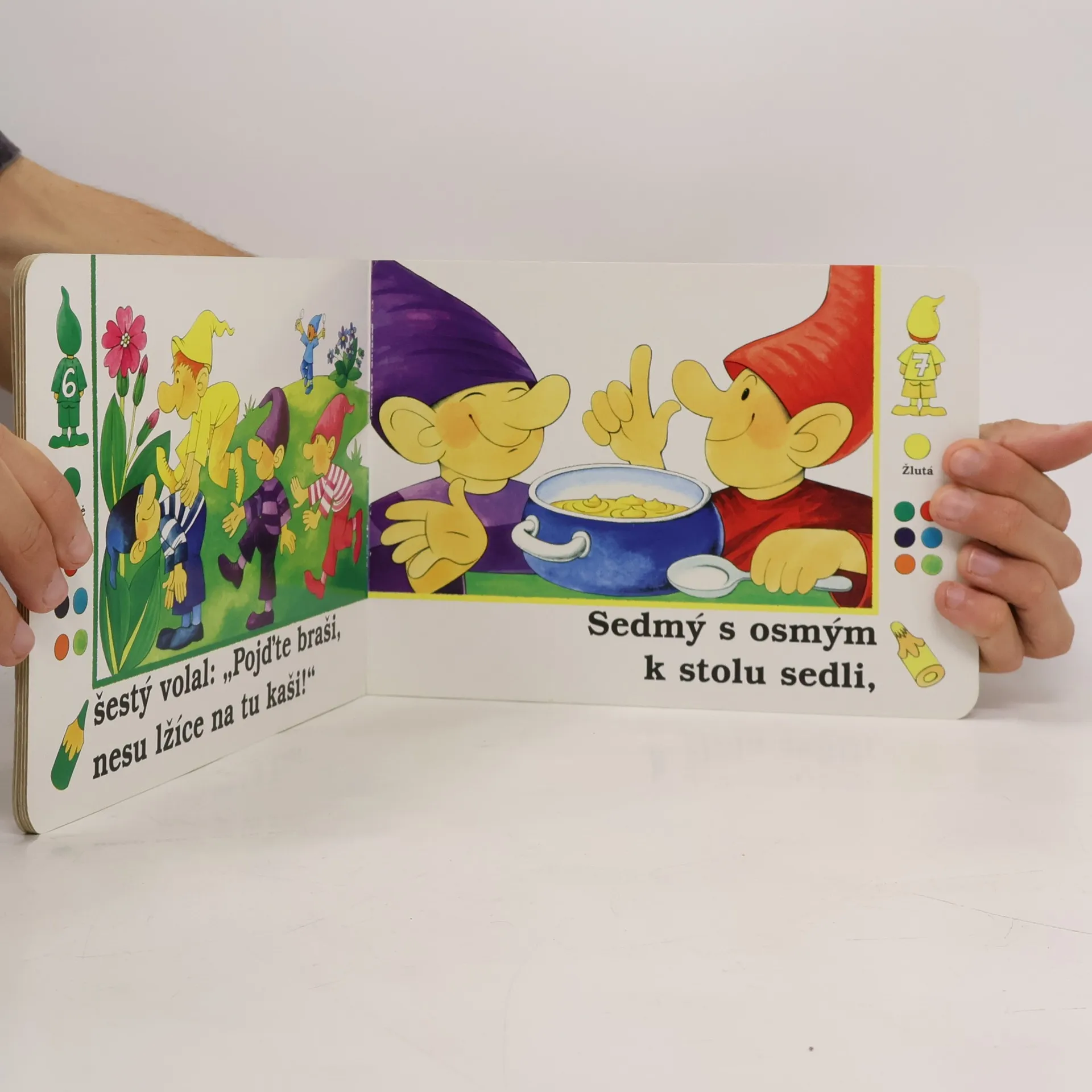 V tomto novém leporelu se malé děti učí spolu s nezbednými trpaslíky rozeznávat základní barvy a nenásilnou formou se seznamují s čísly od jedné do deseti.